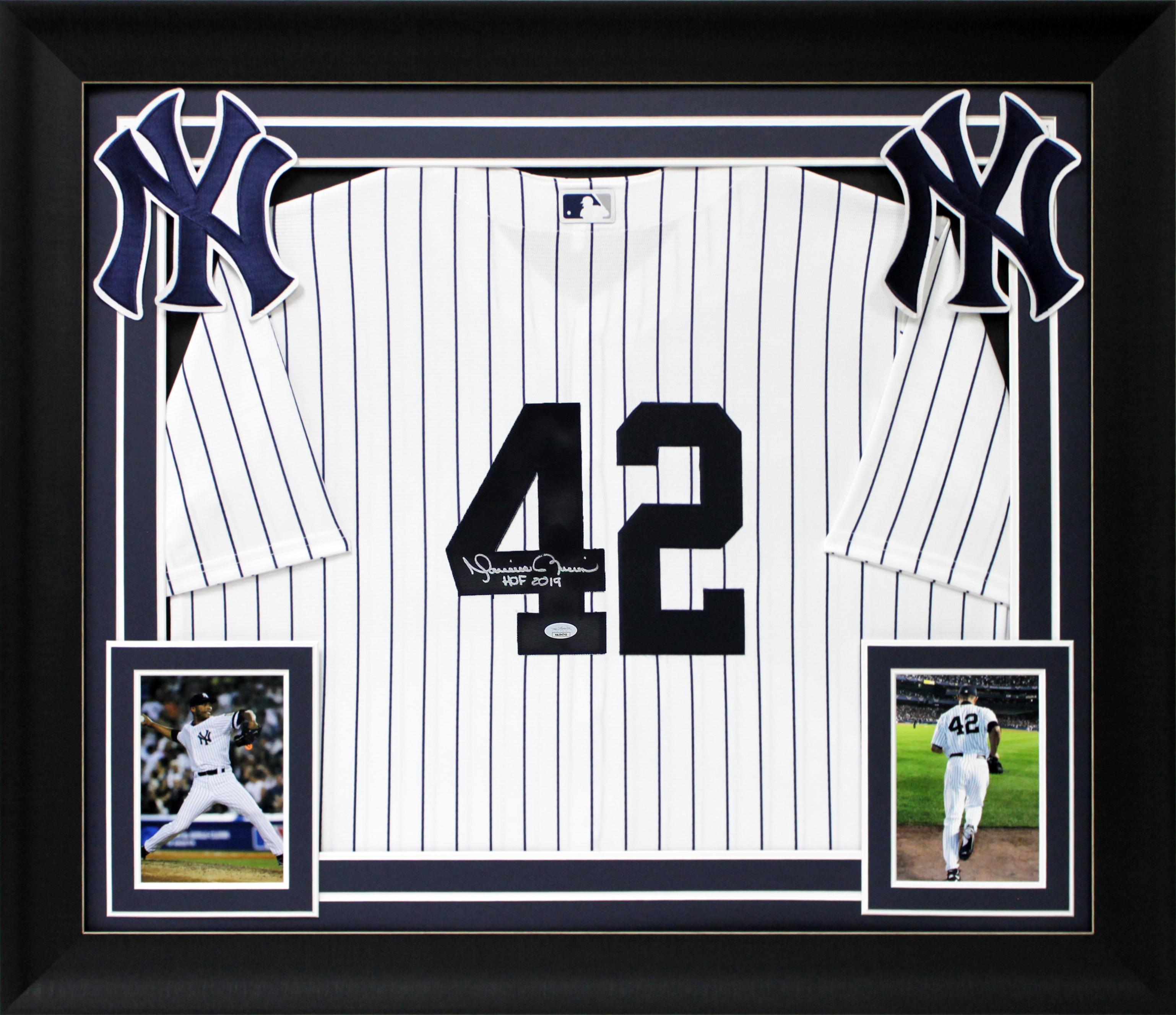 Custom frame measures approximately 32" x 37" in size and features a Nike jersey that has been hand-signed by Mariano Rivera (HOF).