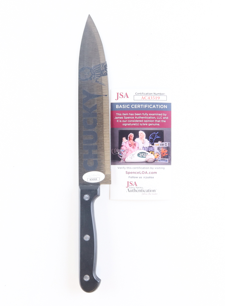 "Child's Play" replica steel knife measure approximately 12" in length and has been hand-signed and inscribed by Alex Vincent (Andy Barclay).