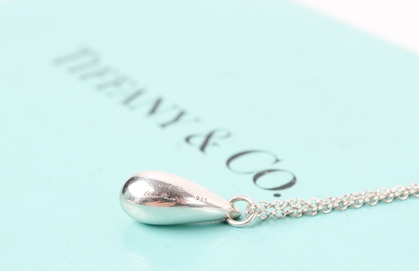 Tiffany & Co. Silver Elsa Peretti Tear Drop Necklace with Original Box