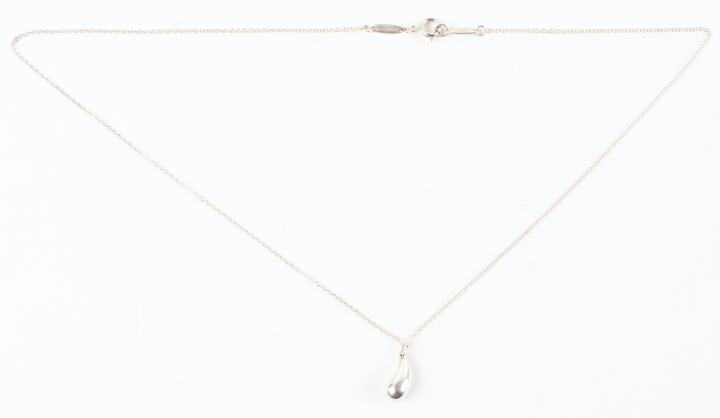 Tiffany and Company Silver Elsa Peretti Tear Drop Necklace. Please see photos for more details. Please note necklace comes in its original box and bag set.