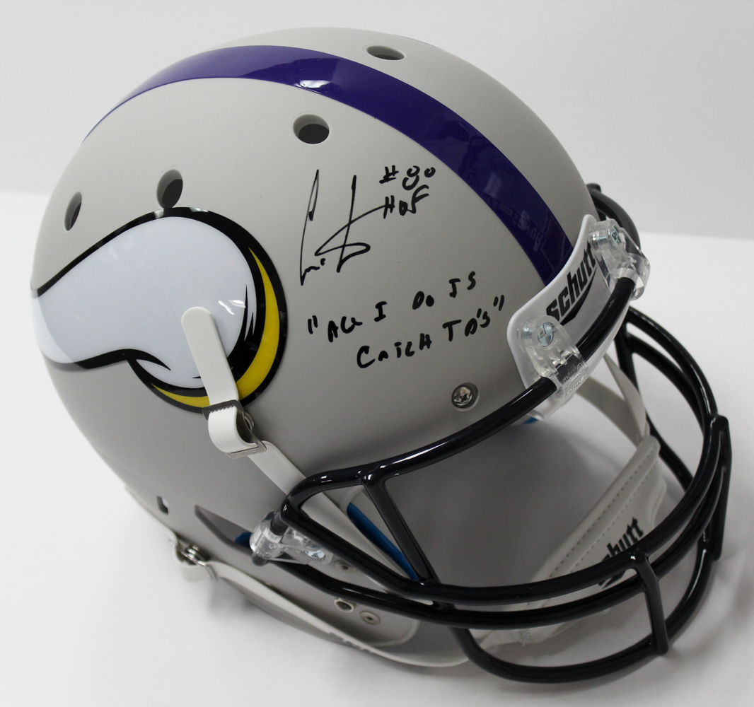 Cris Carter Signed Vikings Custom Matte Grey Full-Size Helmet Inscribed "All I Do Is Catch TD's" (JSA COA)