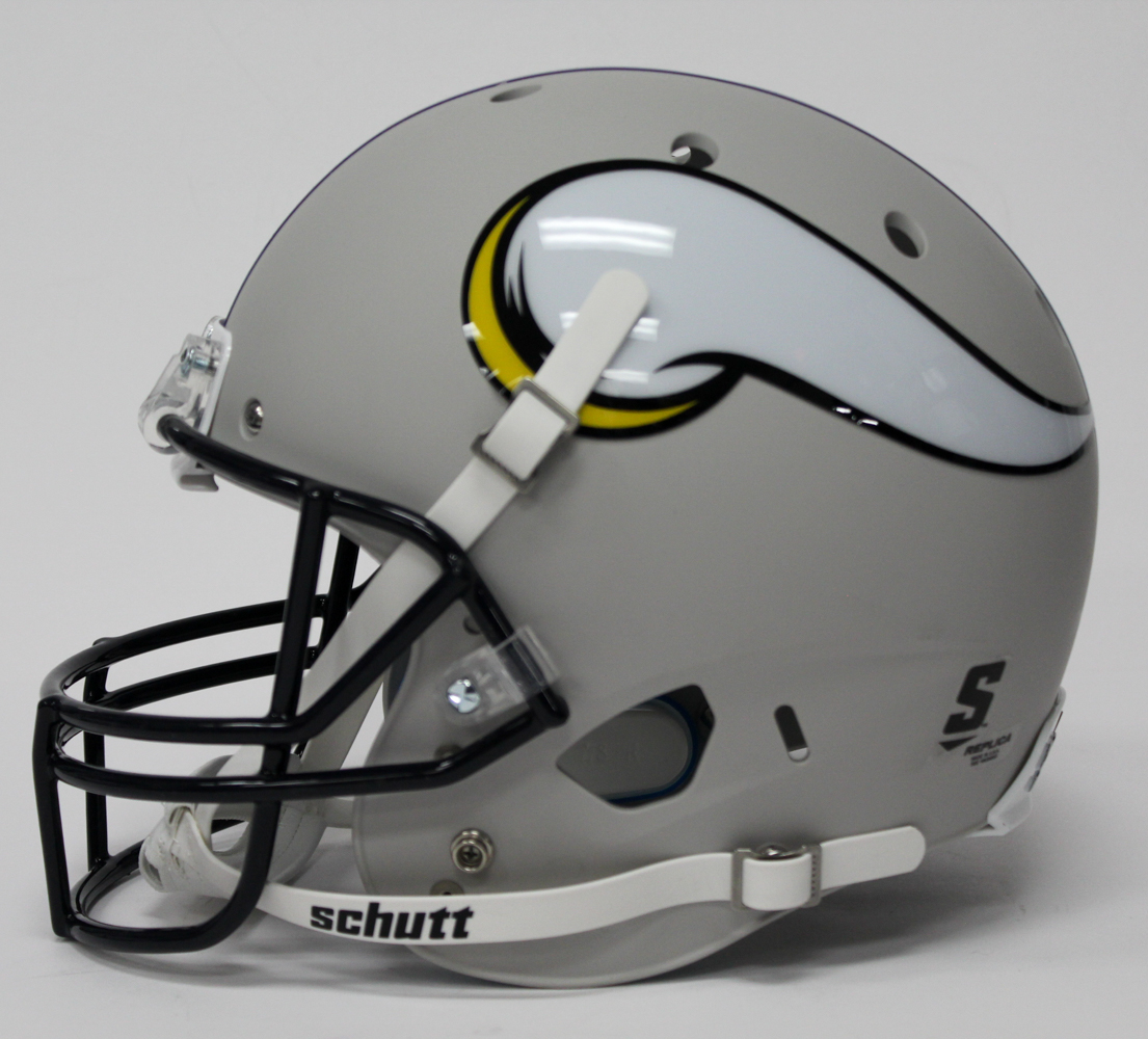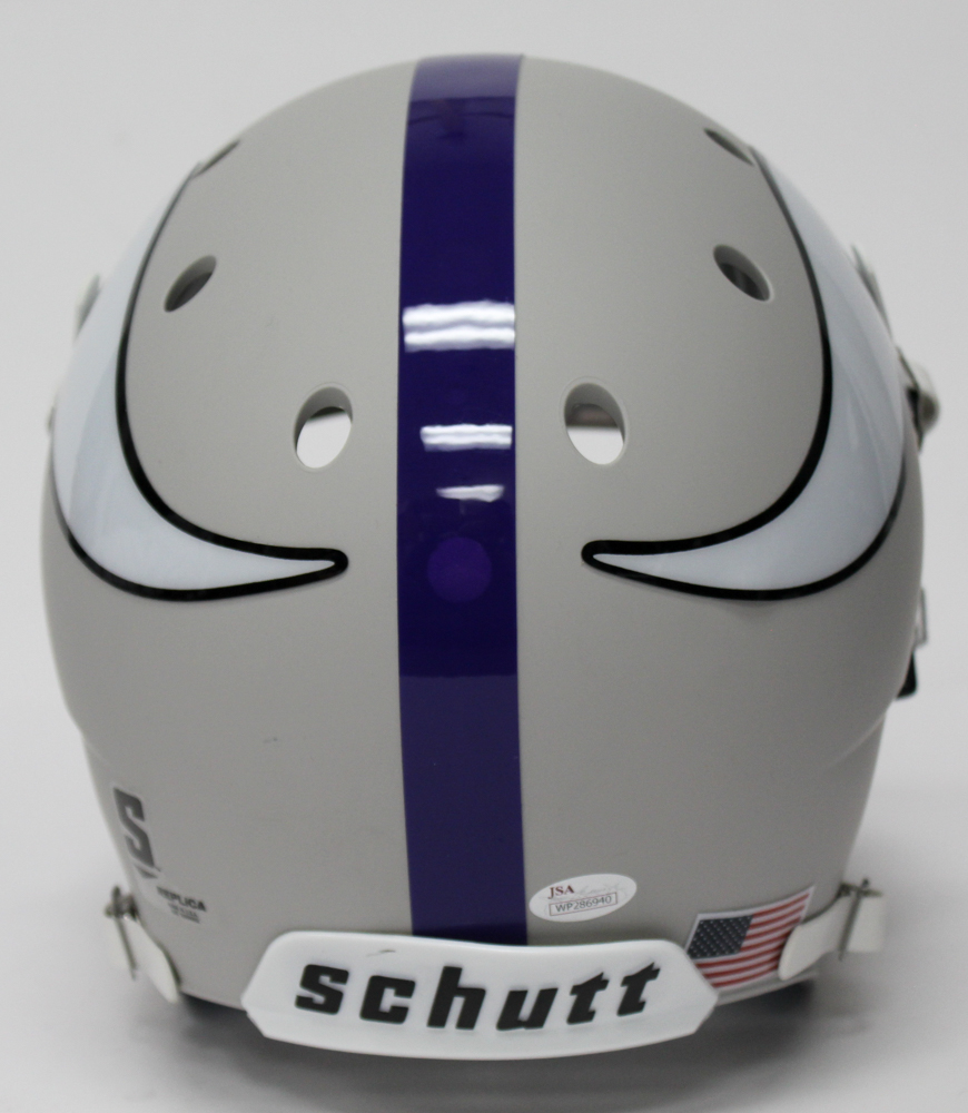 Schutt full-size custom matte grey replica helmet. Hand-signed in black felt-tip pen by Cris Carter (HOF).