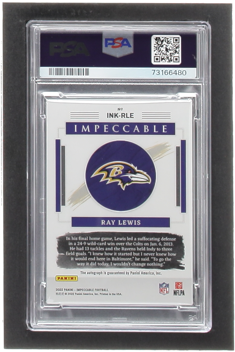 Ray Lewis 2022 Panini Impeccable Illustrious Ink #19 #9/25 (PSA 9)