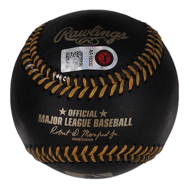 Rawlings Official Major League Black Leather Baseball. Hand-signed by Ronald Acuna Jr. (Atlanta Braves). Please note, the signature is smudged.