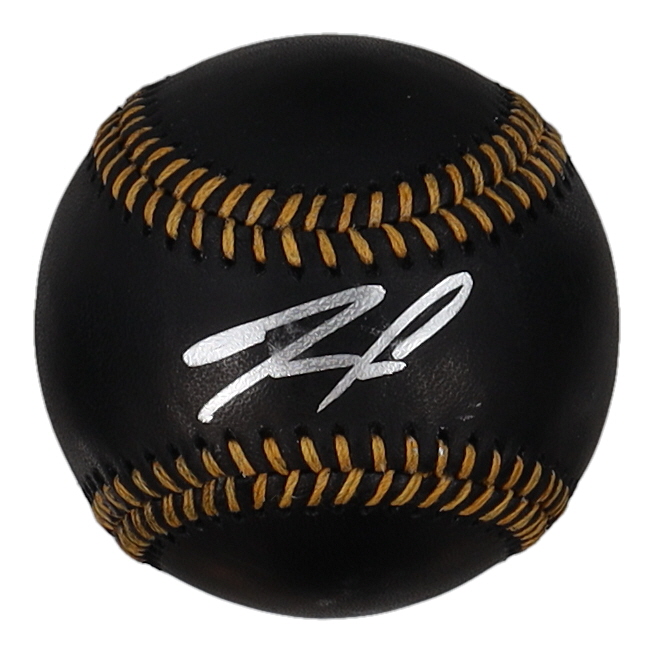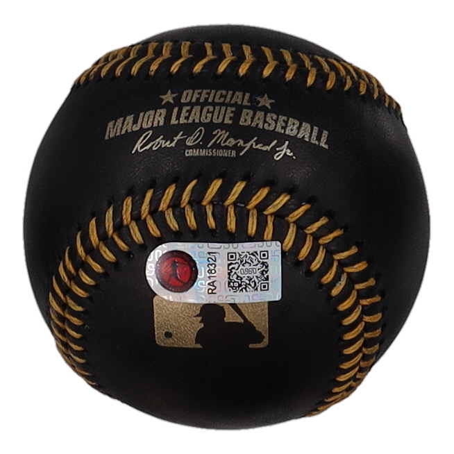 Rawlings Official Major League Black Leather Baseball. Hand-signed by Ronald Acuna Jr. (Atlanta Braves). Please note, the signature is smudged and there are stray ink marks throughout.