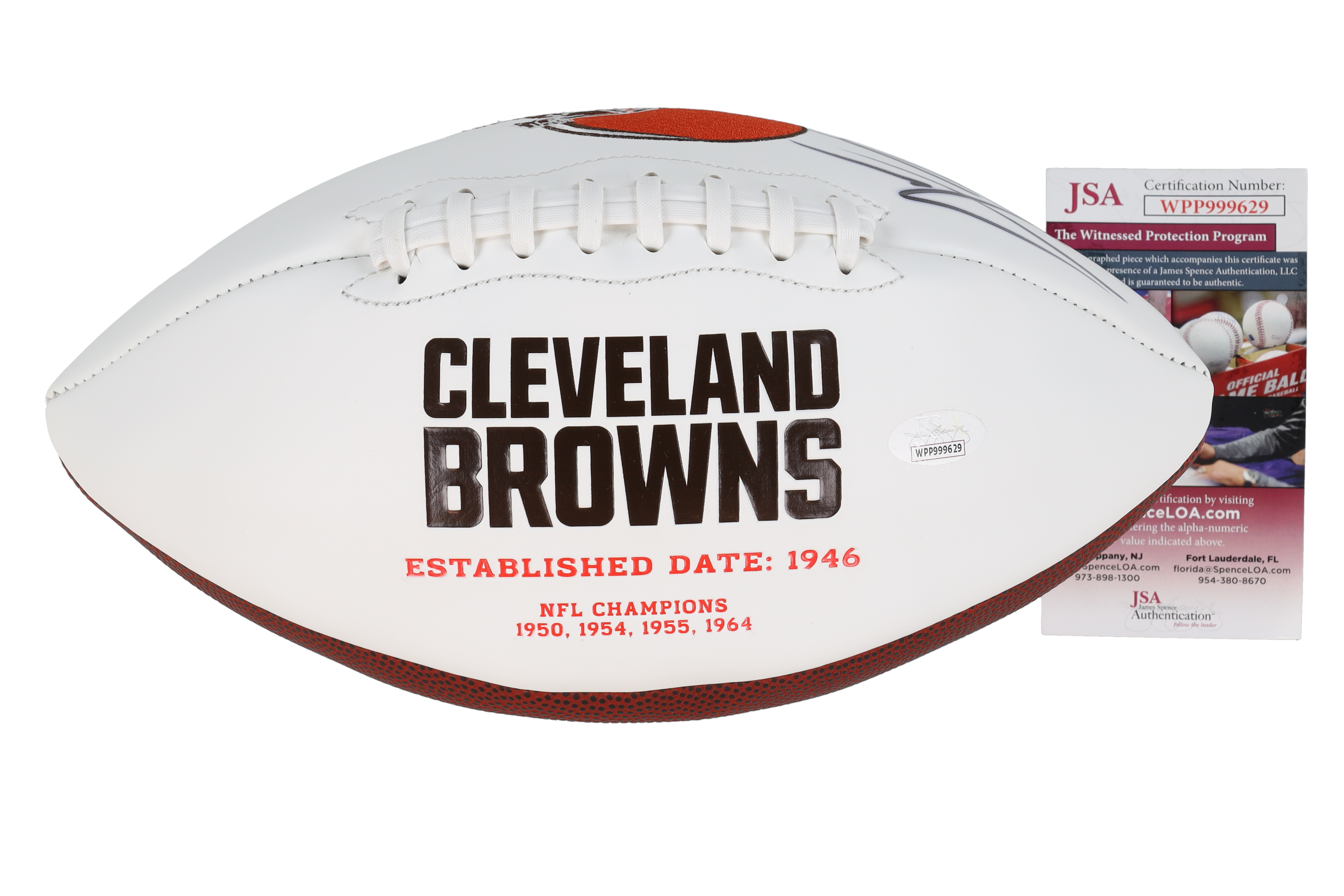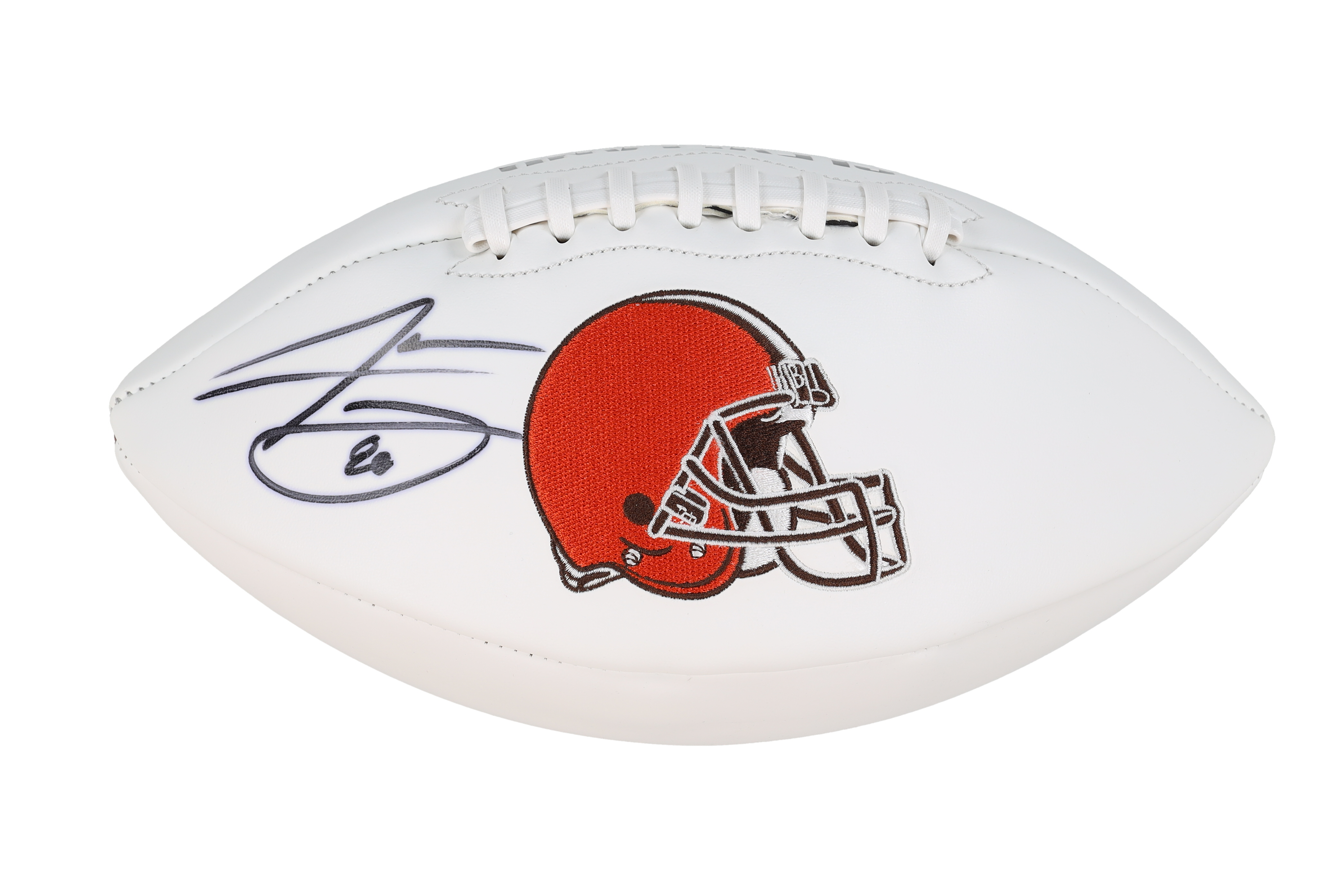 Cleveland Browns logo football. Hand-signed by Jarvis Landry. Please note, the football does not hold air.