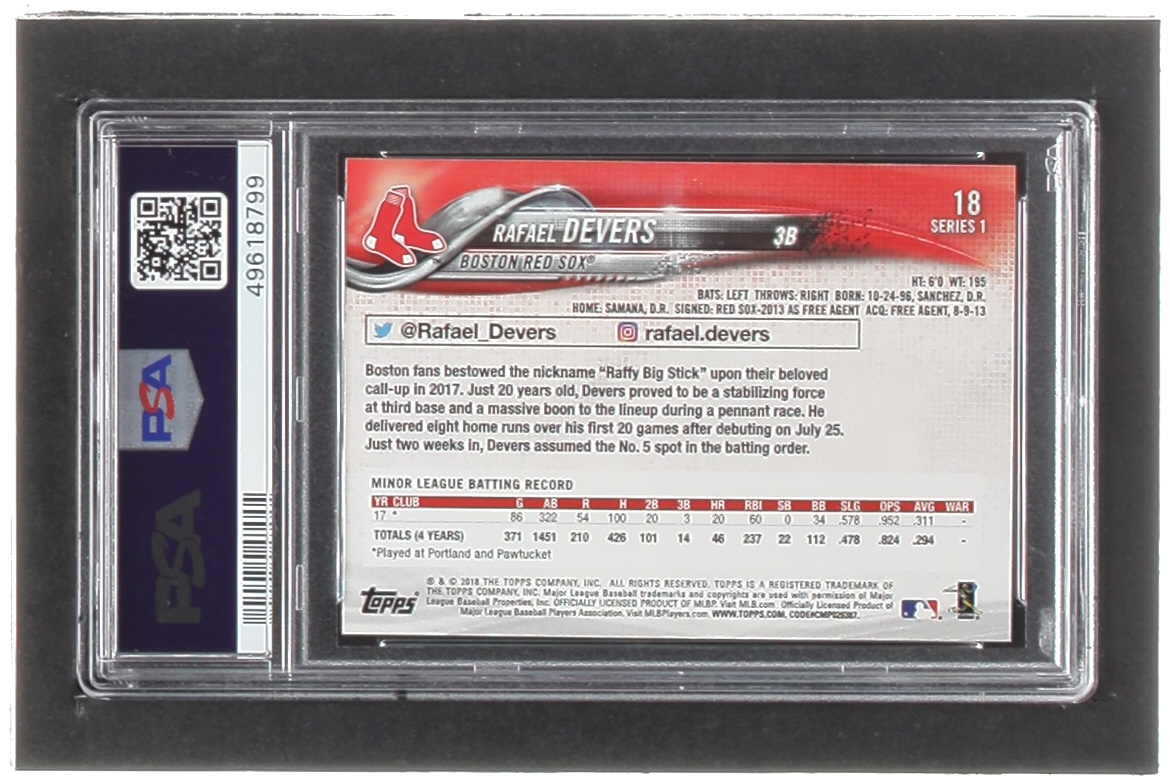Rafael Devers 2018 Topps #18 RC (PSA 10)