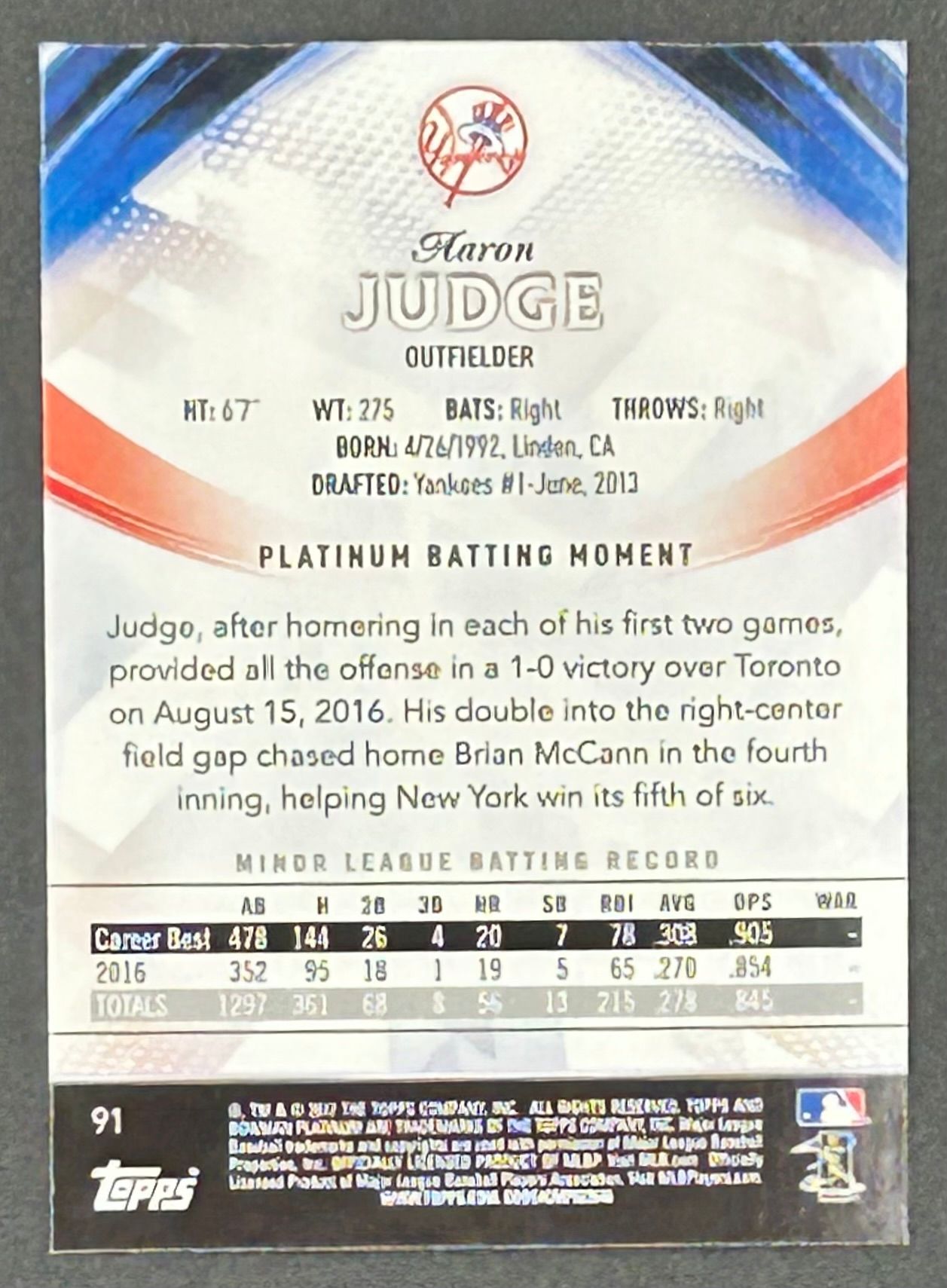 Aaron Judge 2017 Bowman Platinum #91 RC