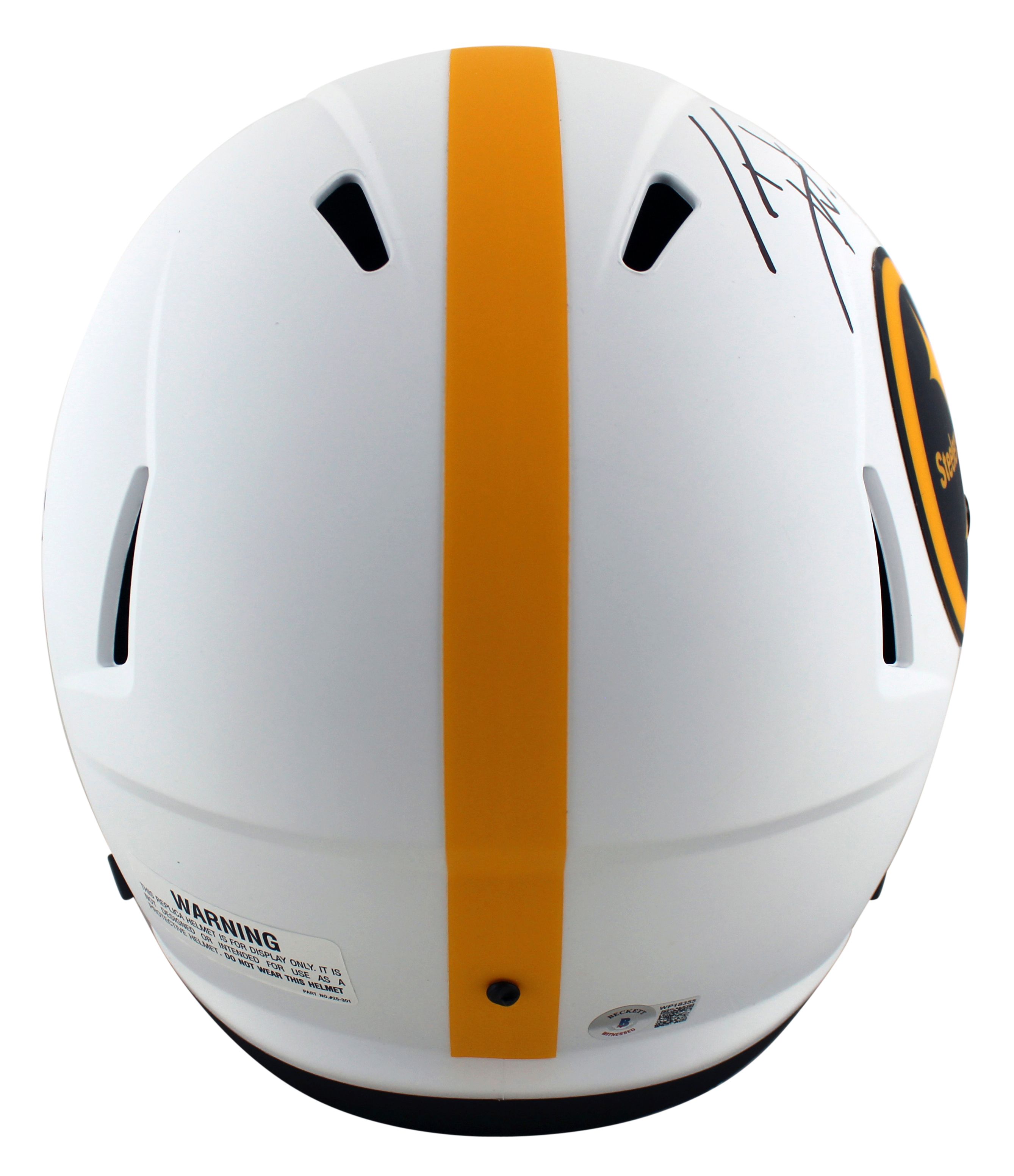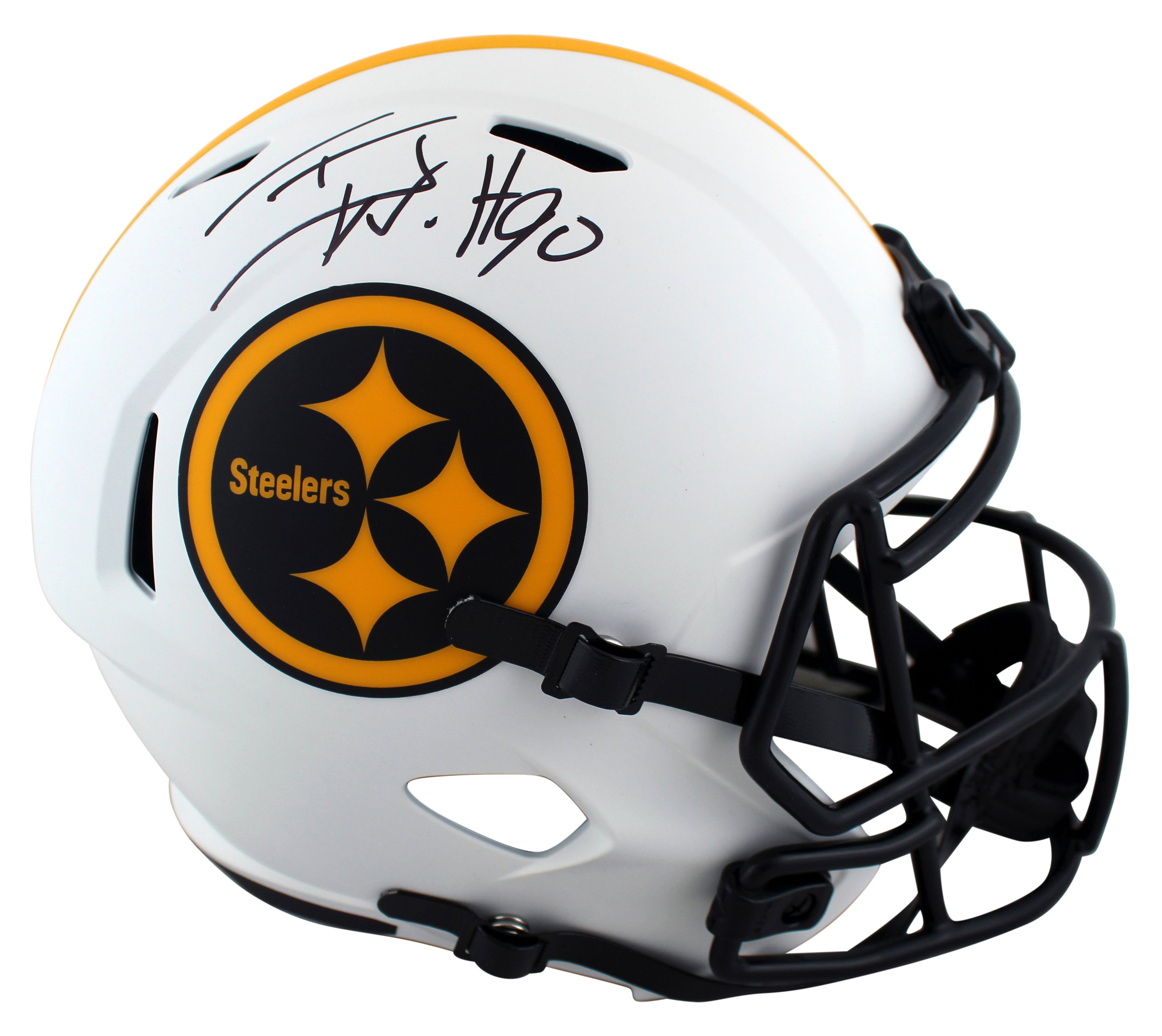 Riddel Pittsburgh Steelers full-size replica Lunar Eclipse Alternate Speed helmet. Hand-signed by T. J. Watt.