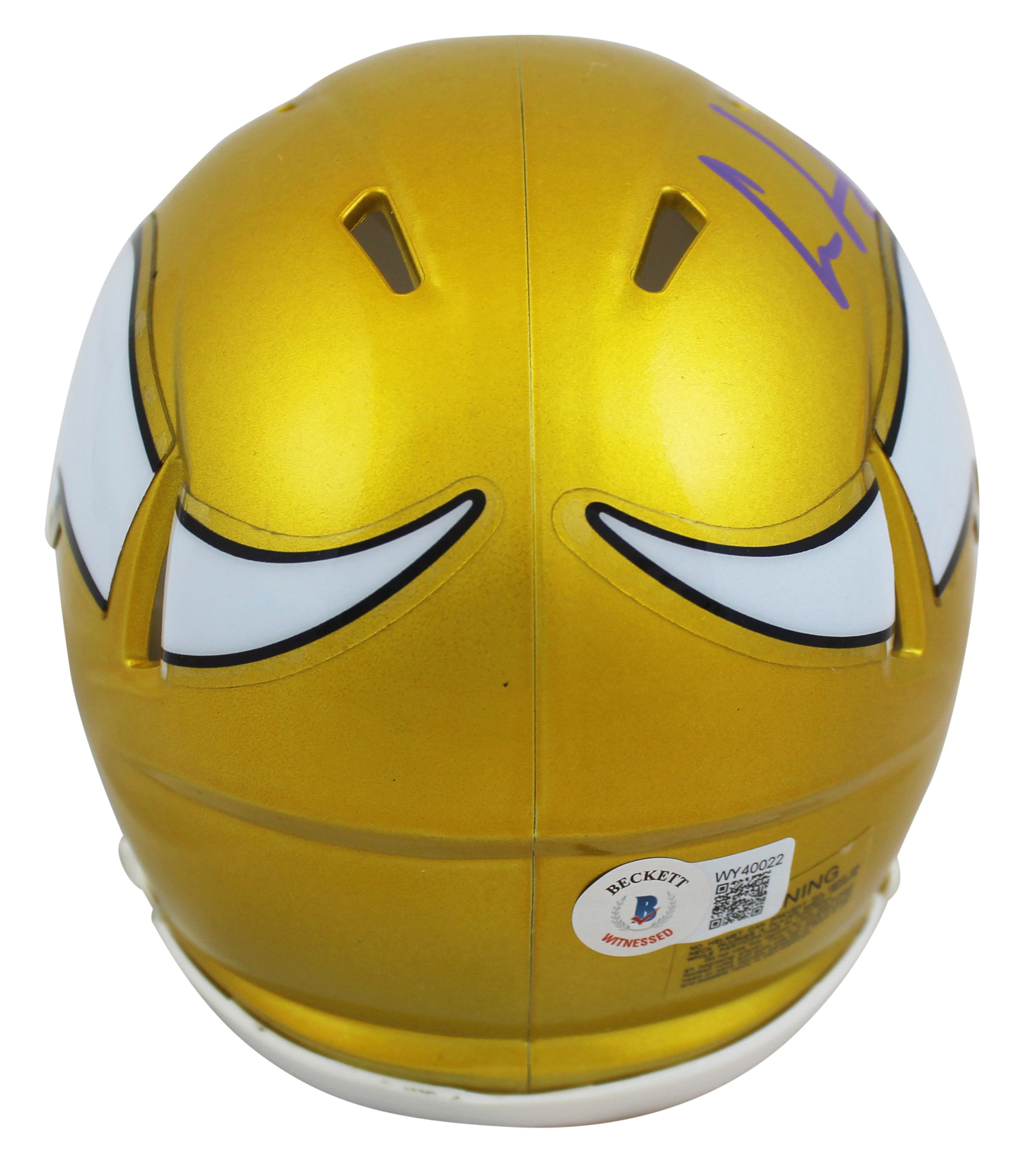 Riddell Minnesota Vikings Flash Alternate Speed Mini Helmet. Hand-signed by Cris Carter (HOF).