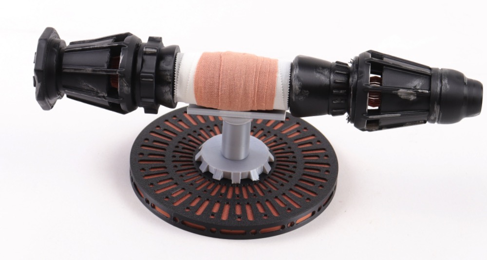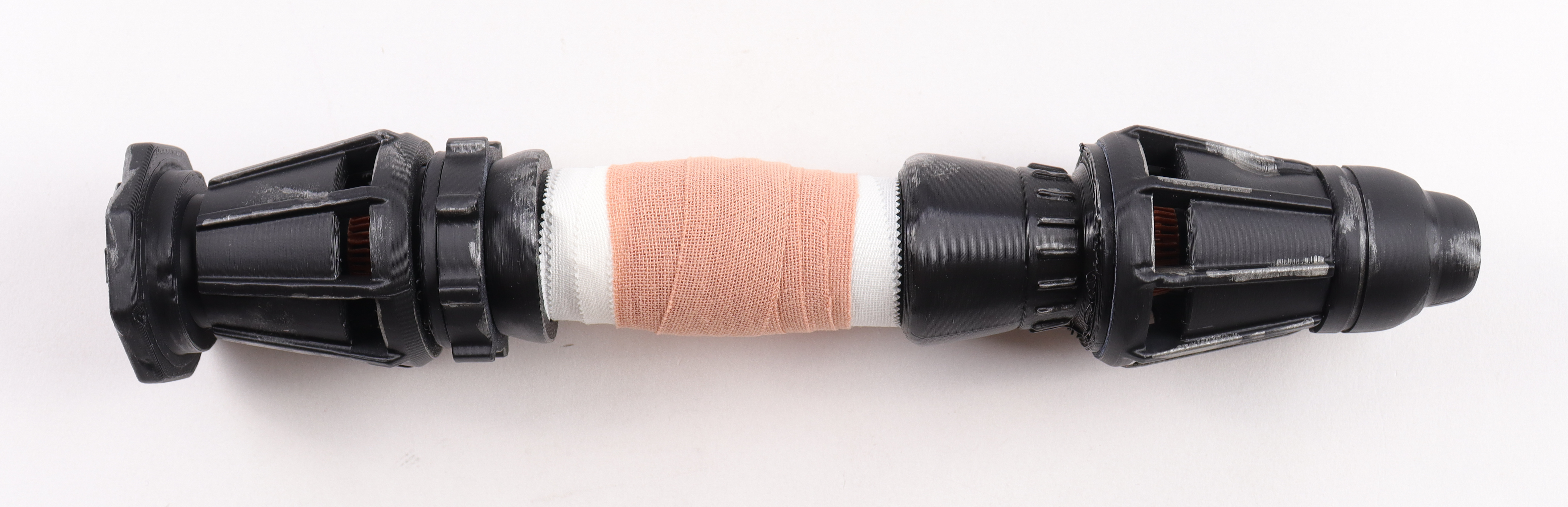 This Rey lightsaber custom display comes complete with a display stand as shown. The lightsaber is full-size and measures approximately 12" in length. The piece has been custom hand-painted to achieve an authentic weathered appearance. Primary material used is plastic.