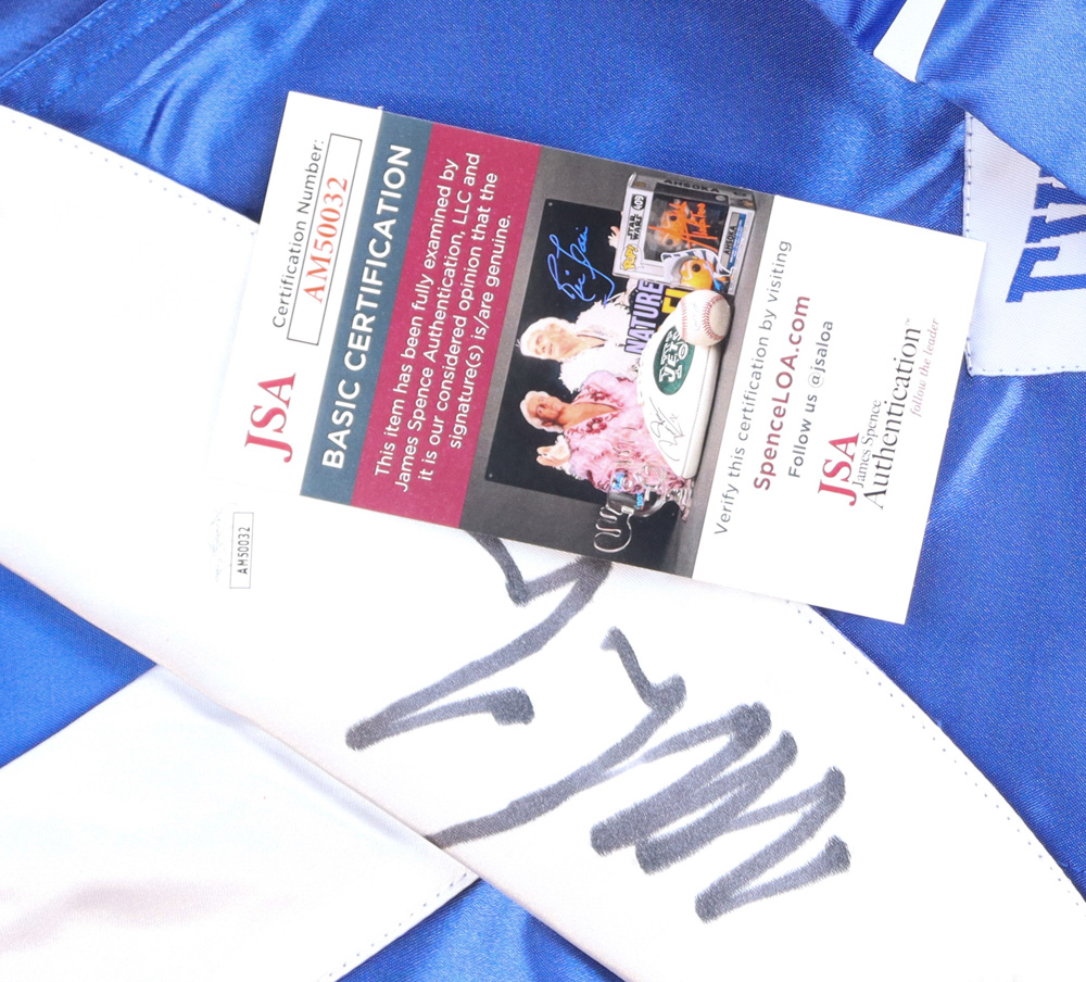 The autograph includes an official James Spence Authentication (JSA) hologram and matching COA as well as an official Mike Tyson hologram from Fiterman Sports Group for authenticity purposes.