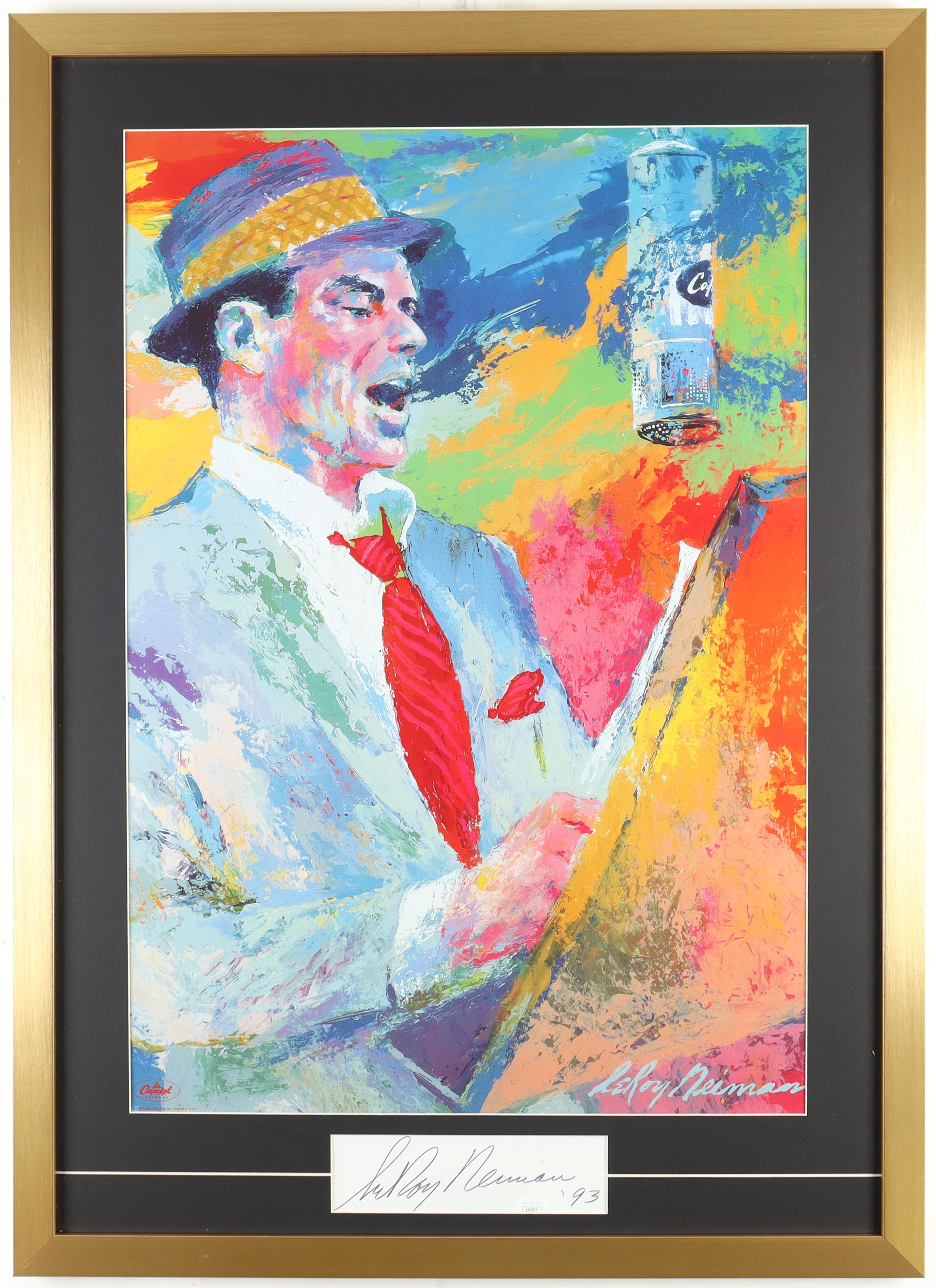 Custom frame measures 26" x 36" in size and features a cut that has been hand-signed and inscribed by LeRoy Neiman (D. 2012). Display also includes a print of Frank Sinatra (D. 1998).