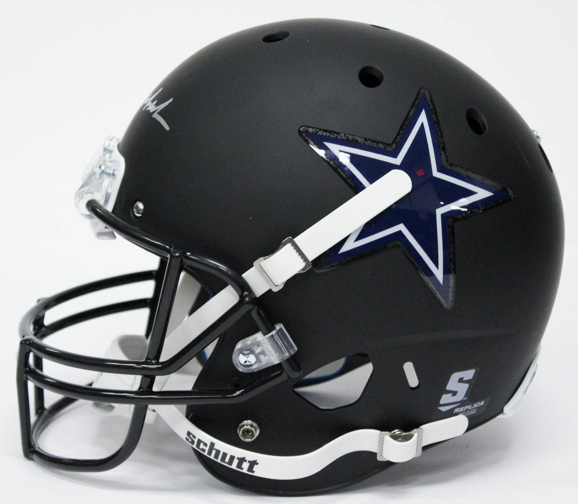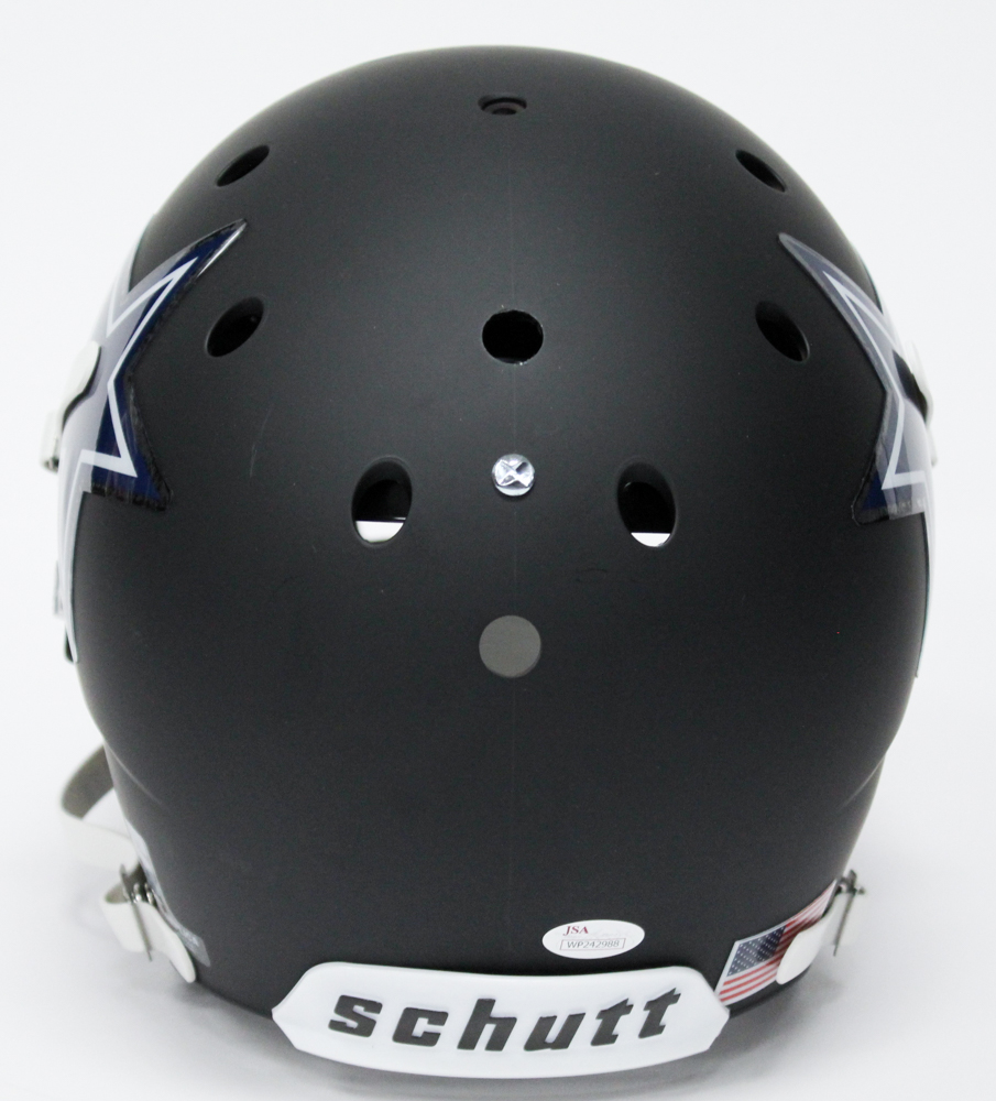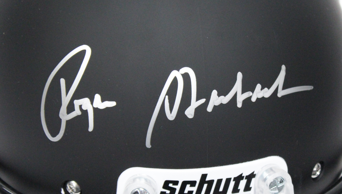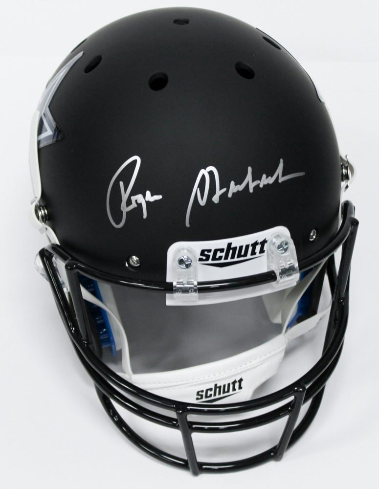 Schutt custom matte black full-size replica helmet. Hand-signed in silver paint pen by Roger Staubach (Cowboys HOF).