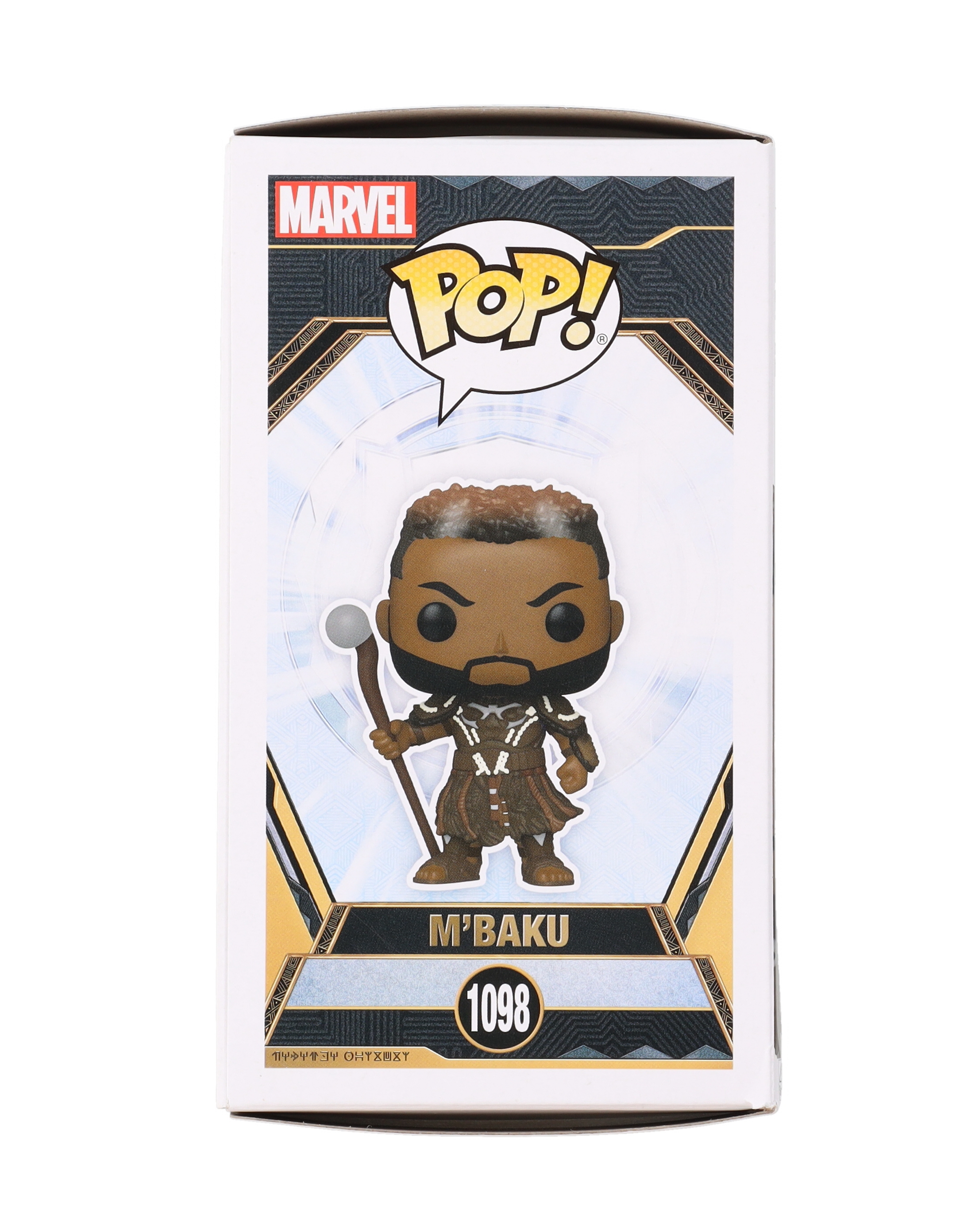 Vinyl figure measures approximately 4" tall and has been hand-signed on the packaging by Winston Duke (M'Baku). Please note, the packaging window has been swapped.