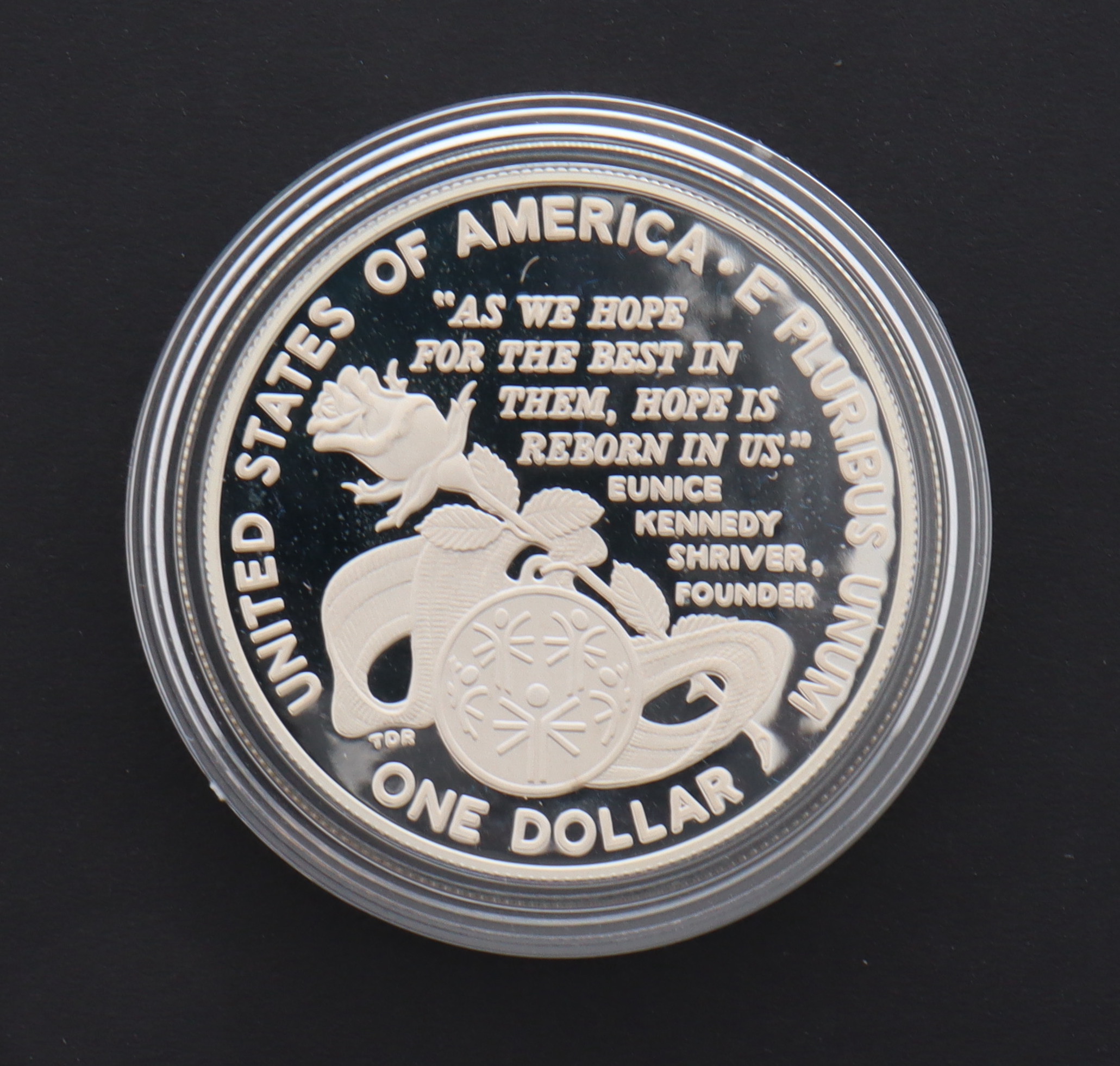 1995 Special Olympics Commemorative Silver Dollar Proof Coin with Original Packaging