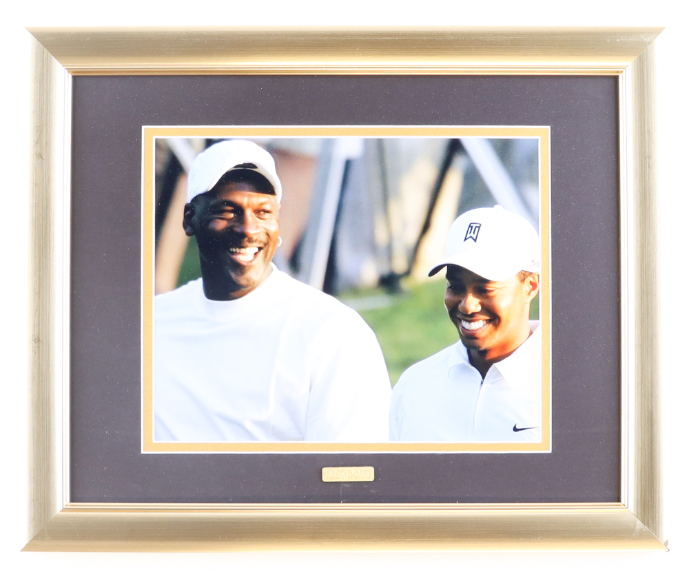 Michael Jordan & Tiger Woods Custom Framed Photo Display with Gold Nike Pin