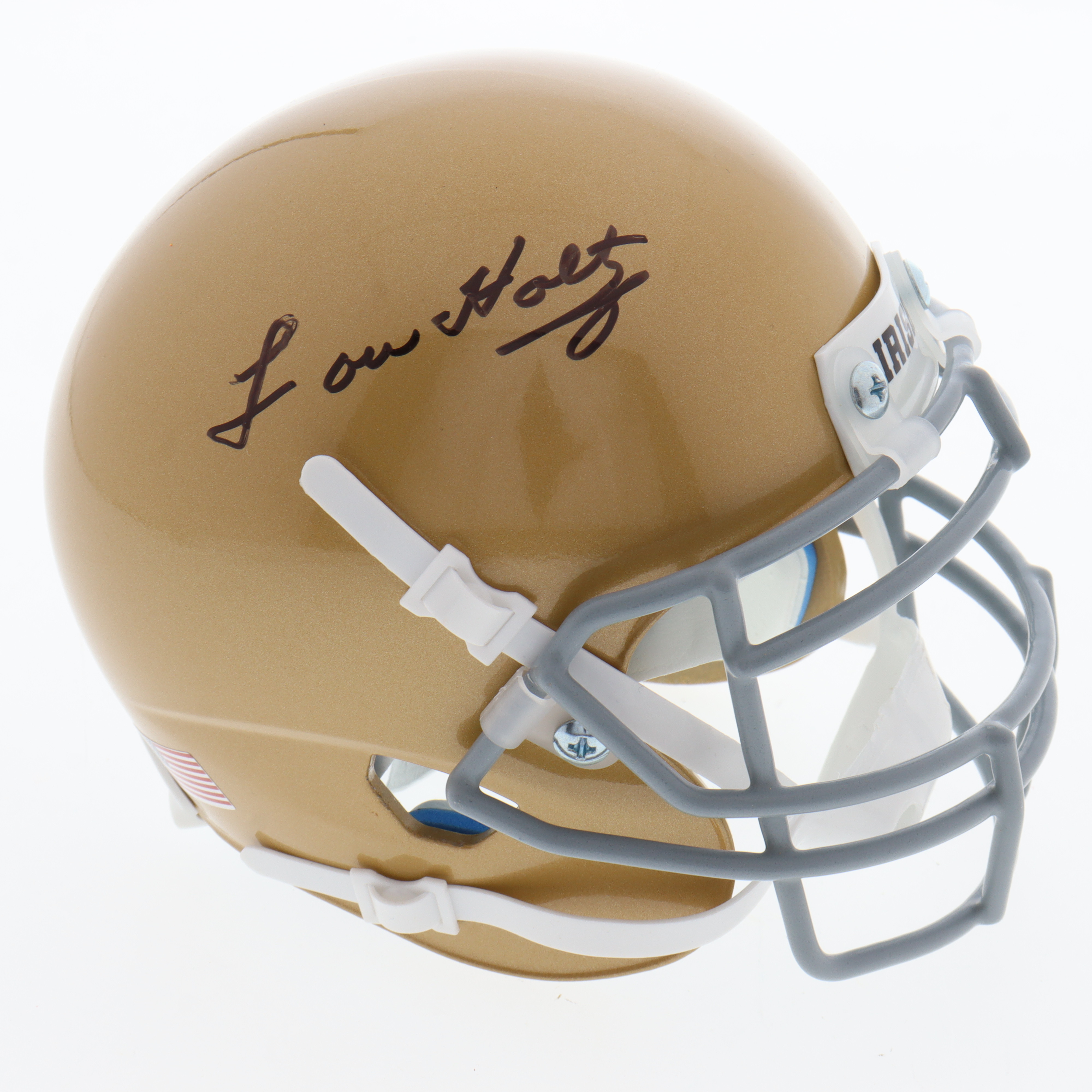 Schutt Notre Dame Fighting Irish mini helmet. Hand-signed by Lou Holtz.