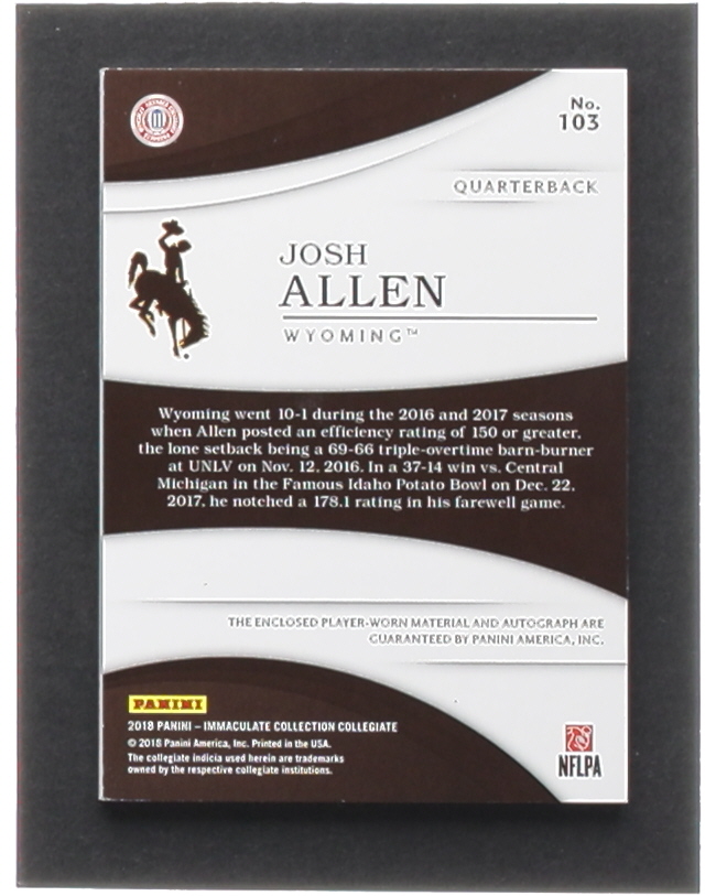 Josh Allen 2018 Immaculate Collection Collegiate Premium Rookie Patch Autographs Gold #103 RC #7/25