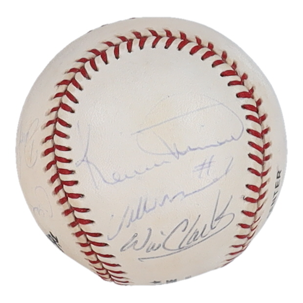 Rawlings Official National League baseball has been hand-signed by (6) with Will Clark, Kevin Mitchell, Matt Williams, Dave Righetti and (2) others. Please note, some signatures are faded.