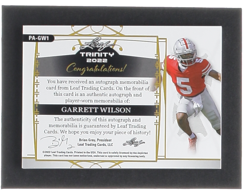 Garrett Wilson 2022 Leaf Trinity Patch Autographs Gold #PAGW1 RC #30/75