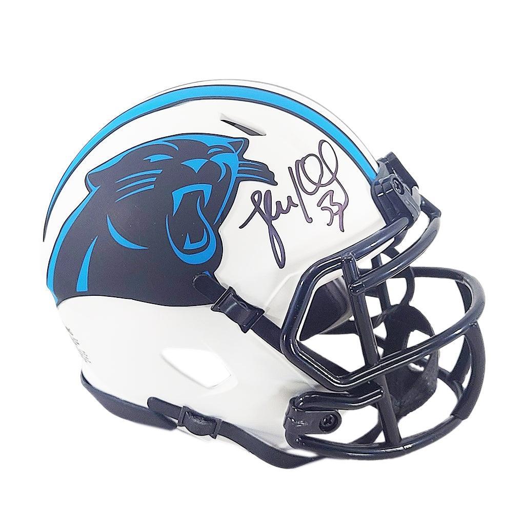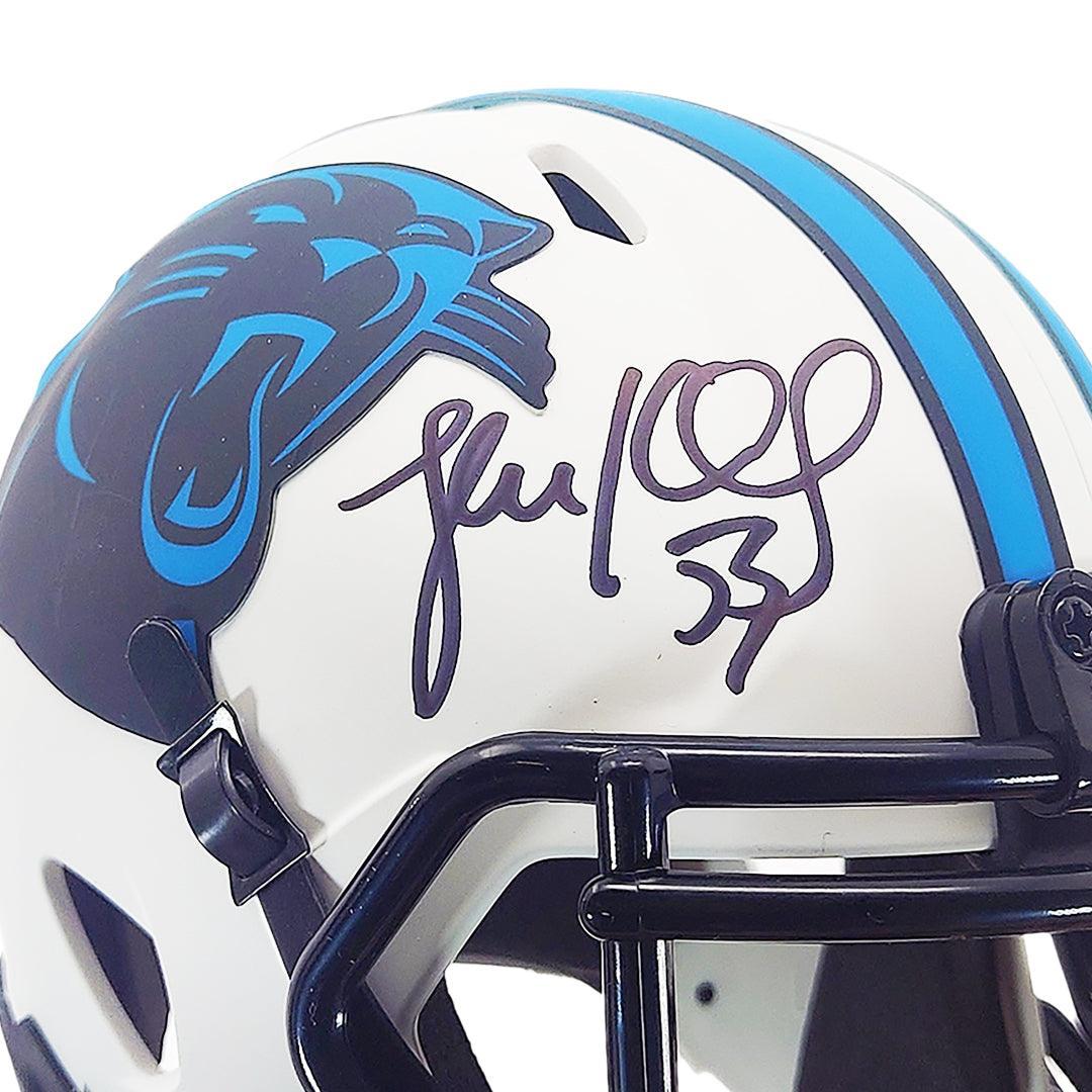 Riddell Carolina Panthers Lunar Eclipse Alternate Speed mini helmet has been hand-signed by Luke Kuechly.
