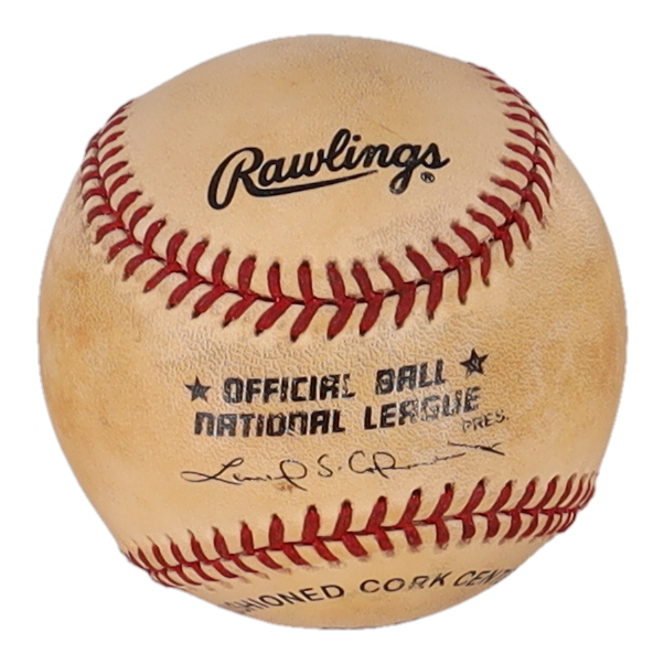 Rawlings Official National League baseball has been hand-signed and inscribed by Billy Williams (Chicago Cubs, HOF). Please note, the baseball is naturally toned.