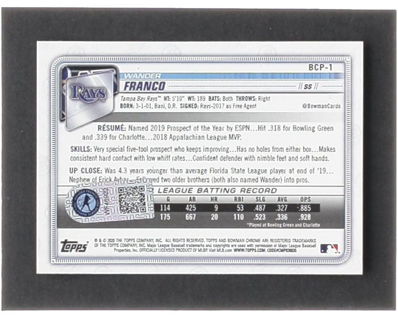 Wander Franco Signed 2020 Bowman Chrome Mega Box Prospects Refractors #BCP1 (Franco)