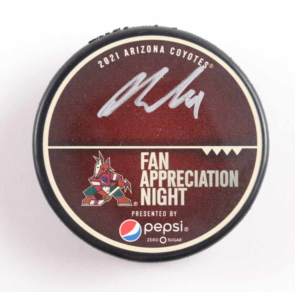 Arizona Coyotes logo hockey puck. Hand-signed by Phil Kessel.