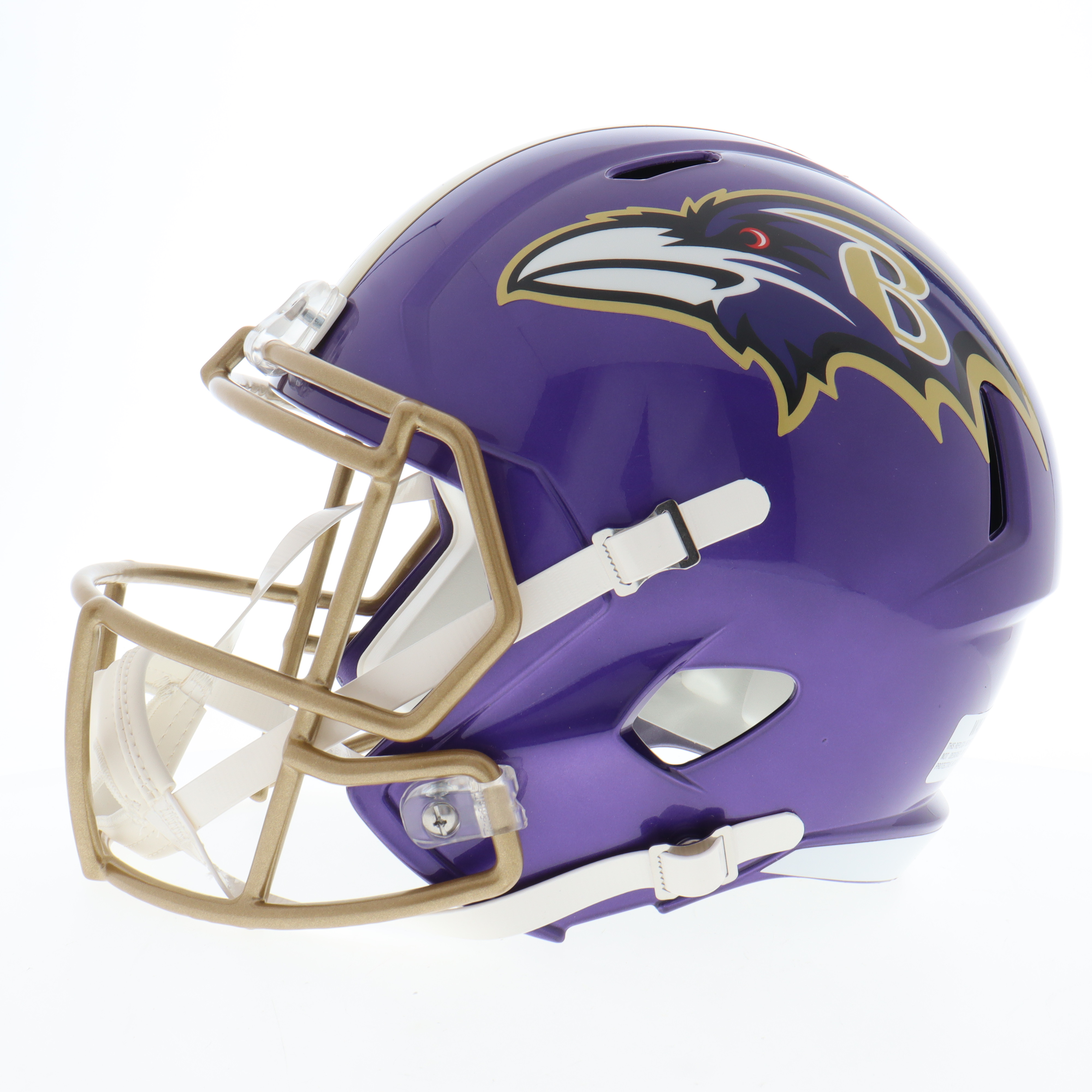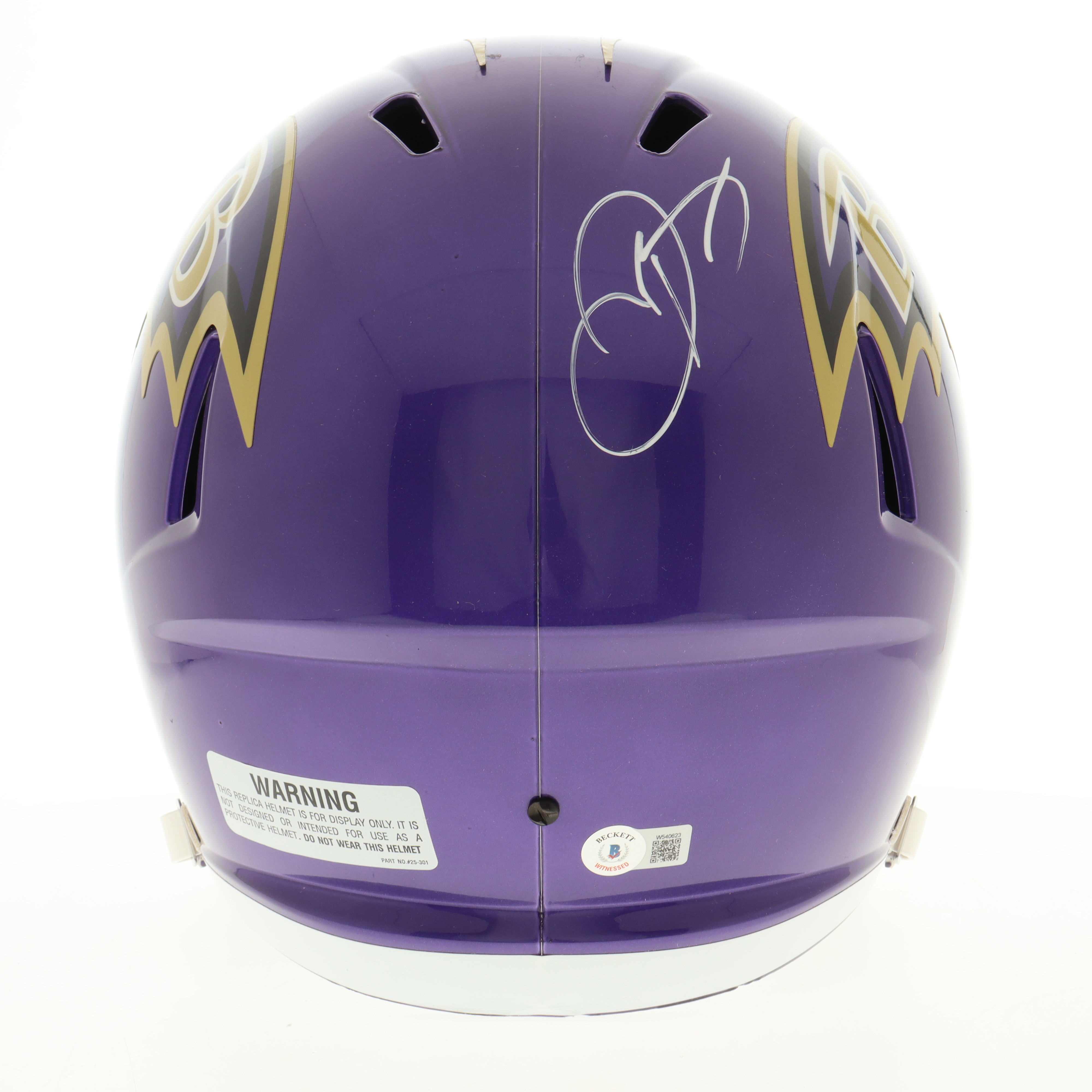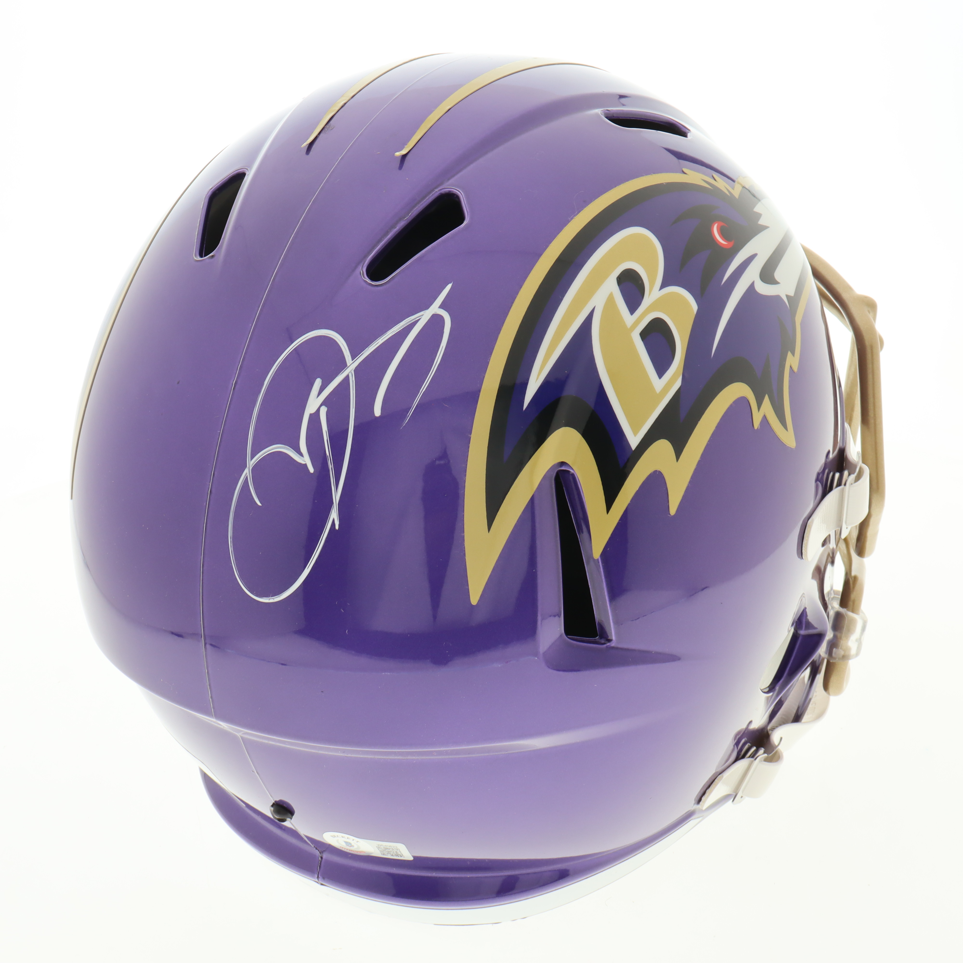 Riddell Baltimore Ravens full-size flash alternate Speed helmet. Hand-signed by Odell Beckham Jr. Please note, the decals are lifting.