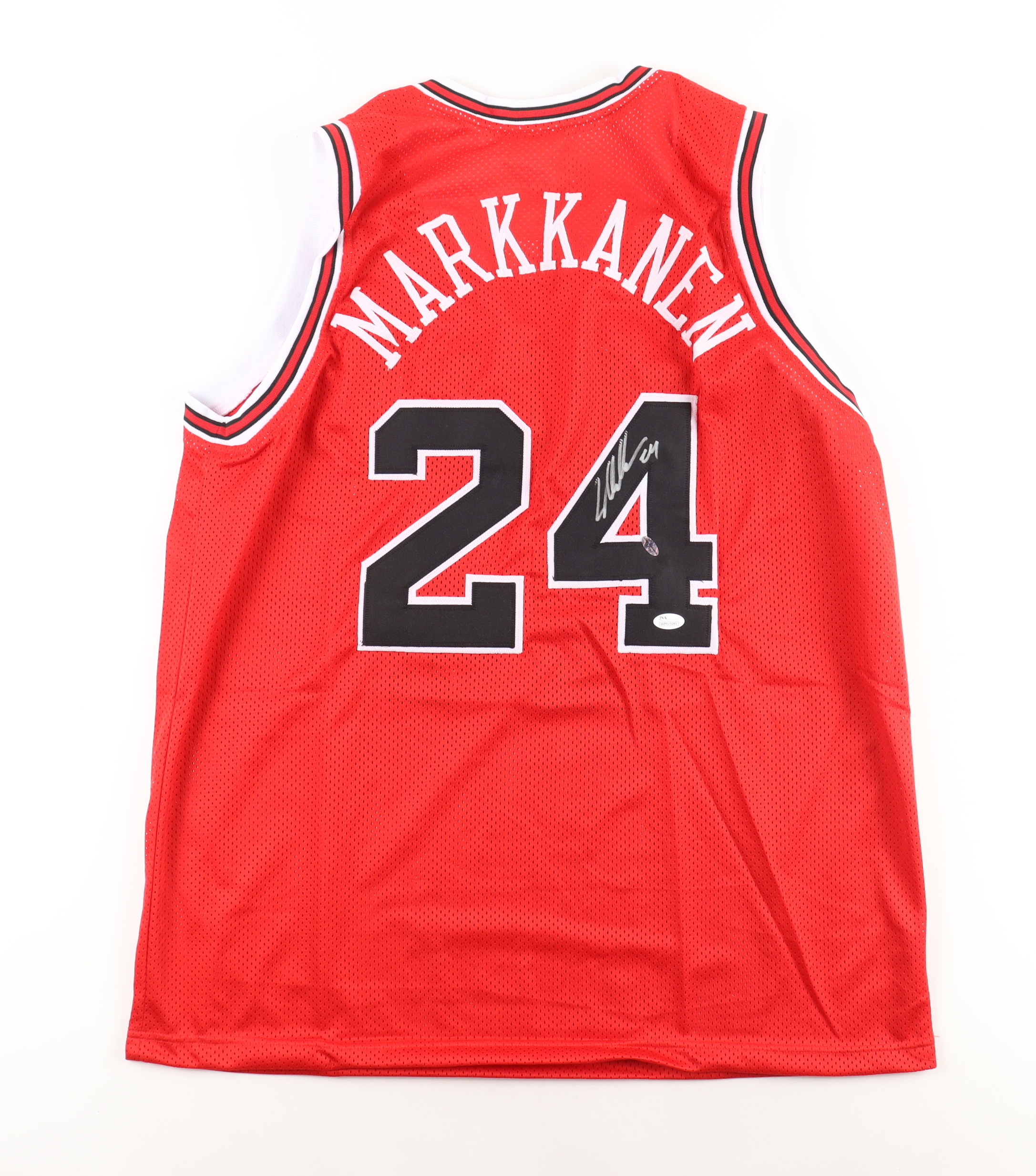 Custom jersey with everything sewn on, size XL. Hand-signed by Lauri Markkanen.
