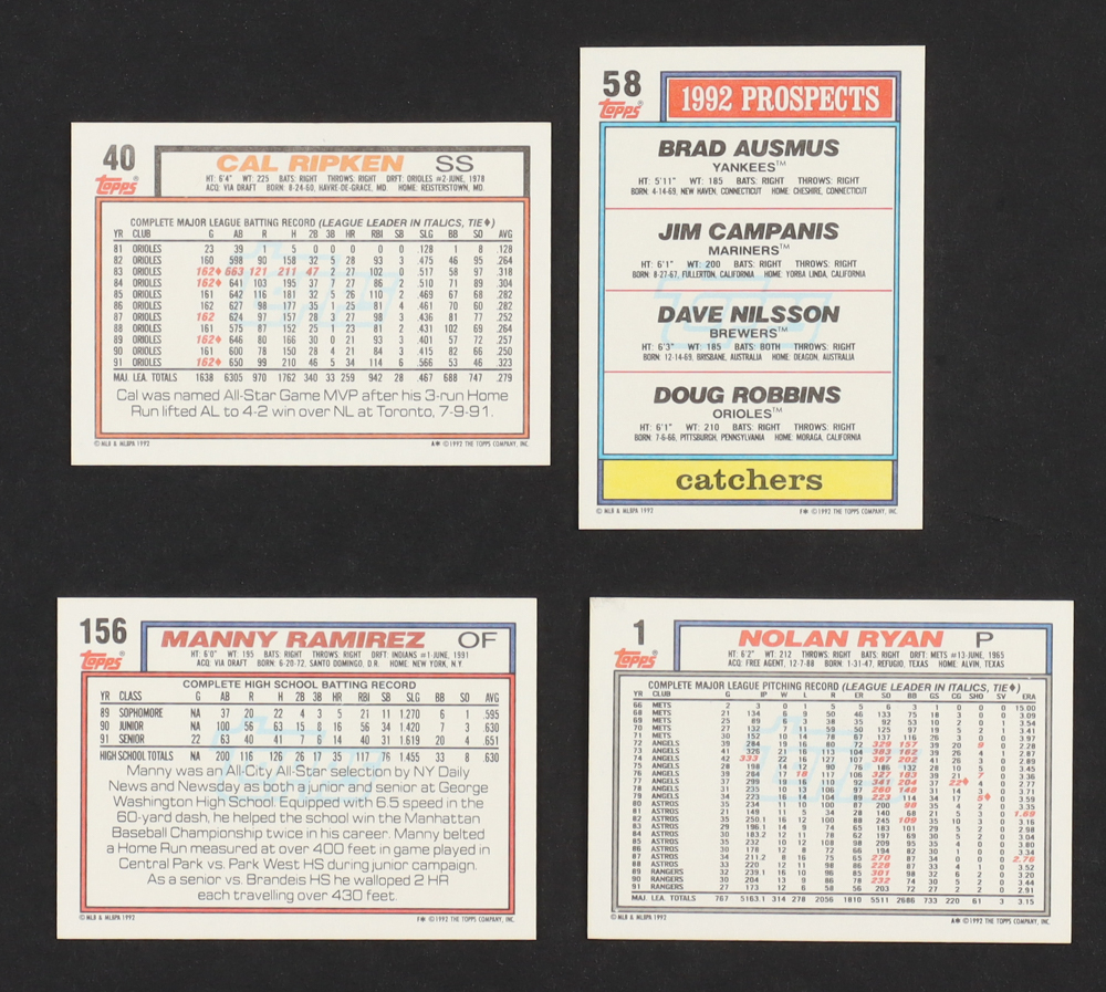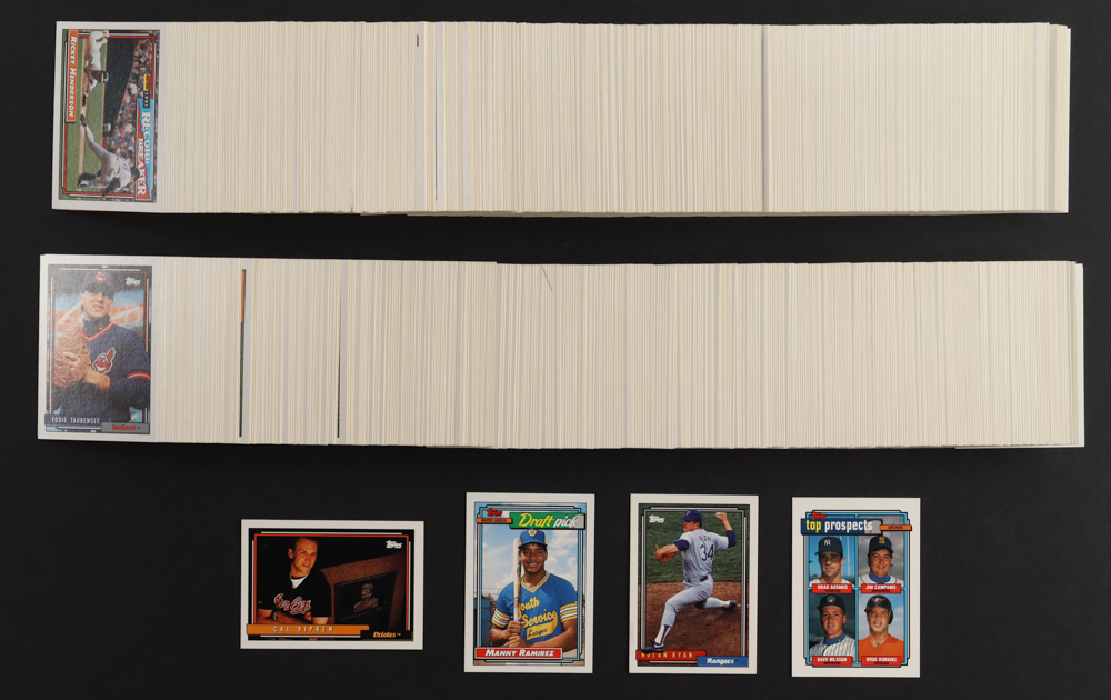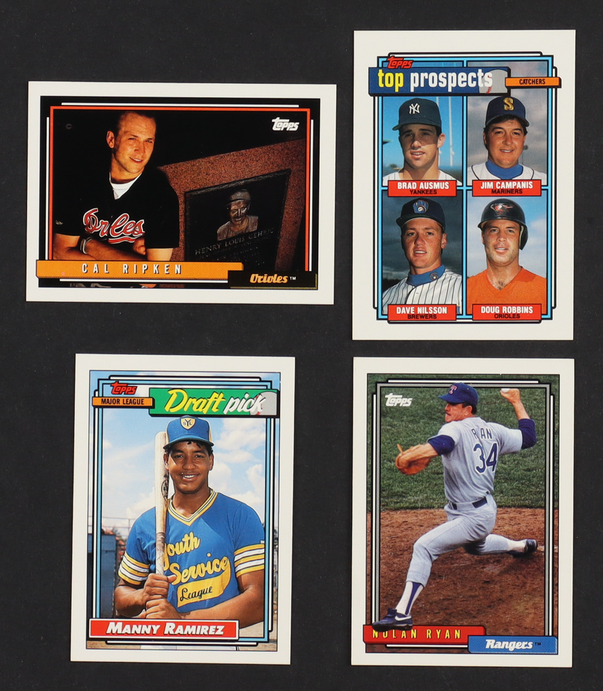 1992 Topps Baseball Complete Set of (792) Cards with Manny Ramirez #156 RC, Cal Ripken #40, Brad Ausmus RC / Jim Campanis Jr. / Dave Nilsson / Doug Robbins #58, Nolan Ryan #1