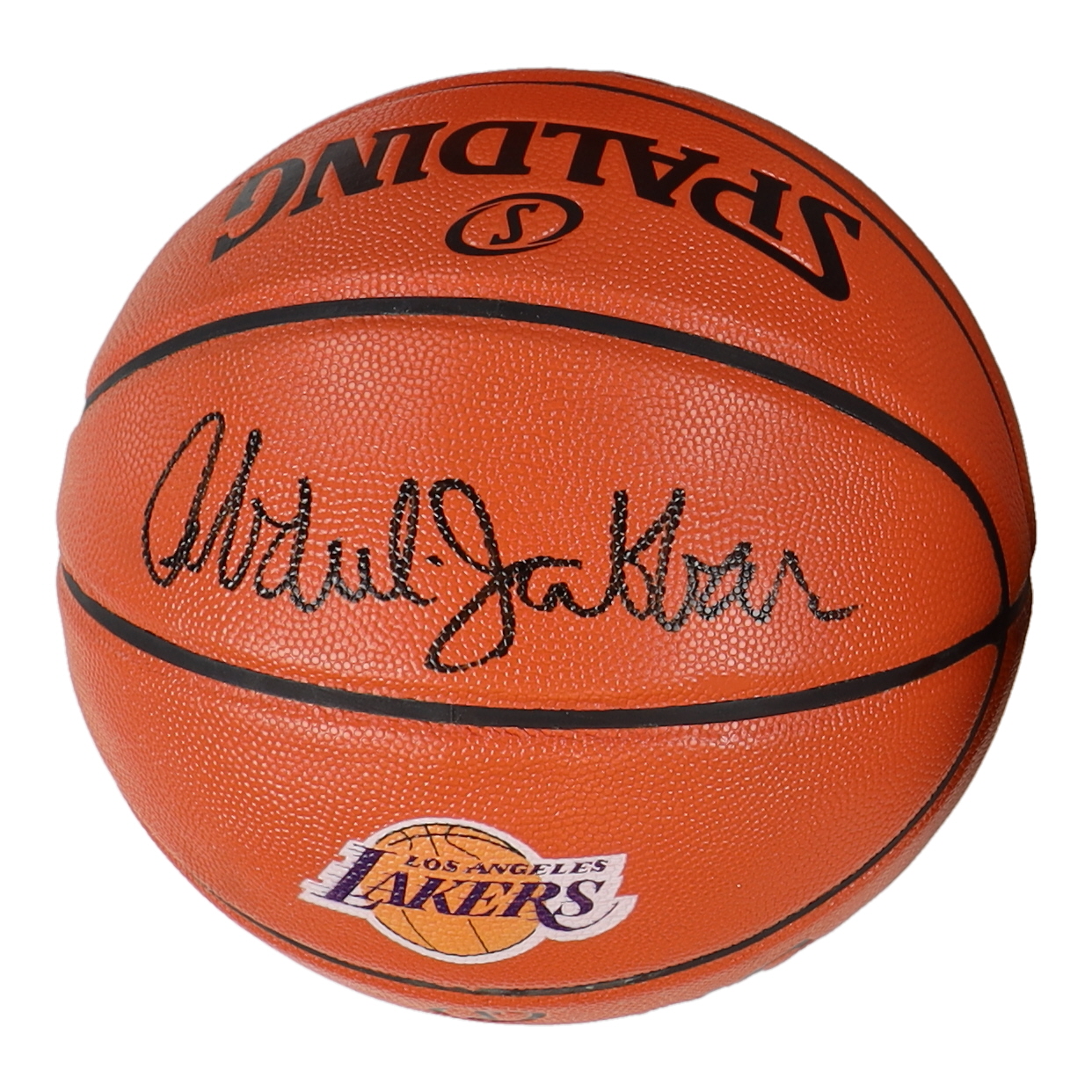 Spalding Los Angeles Lakers logo Game Ball Series NBA basketball. Hand-signed by Kareem Abdul-Jabbar (Los Angeles Lakers, HOF).