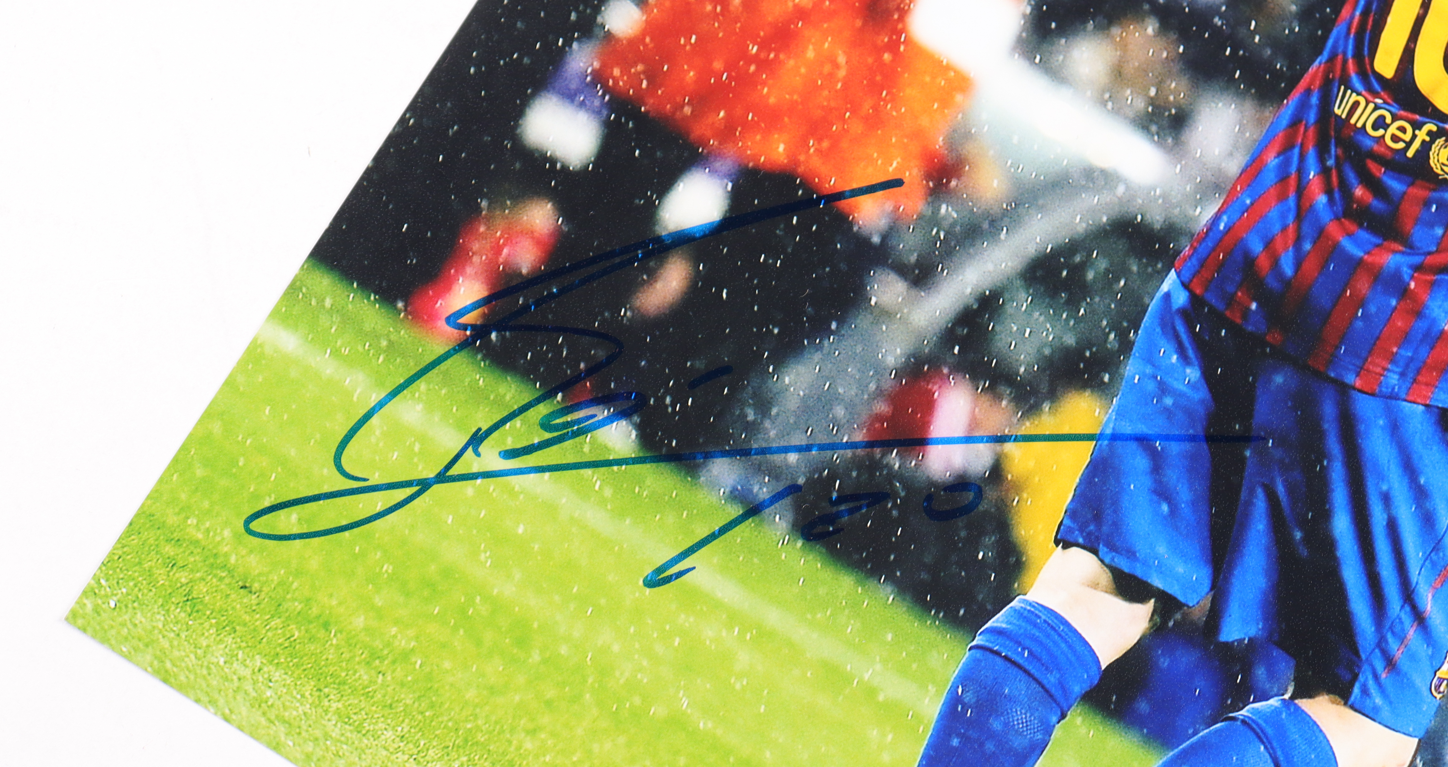 Photo measures 11" x 14" in size and has been hand-signed by Lionel Messi.