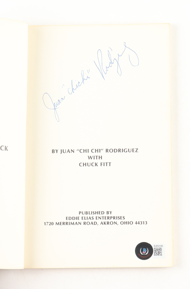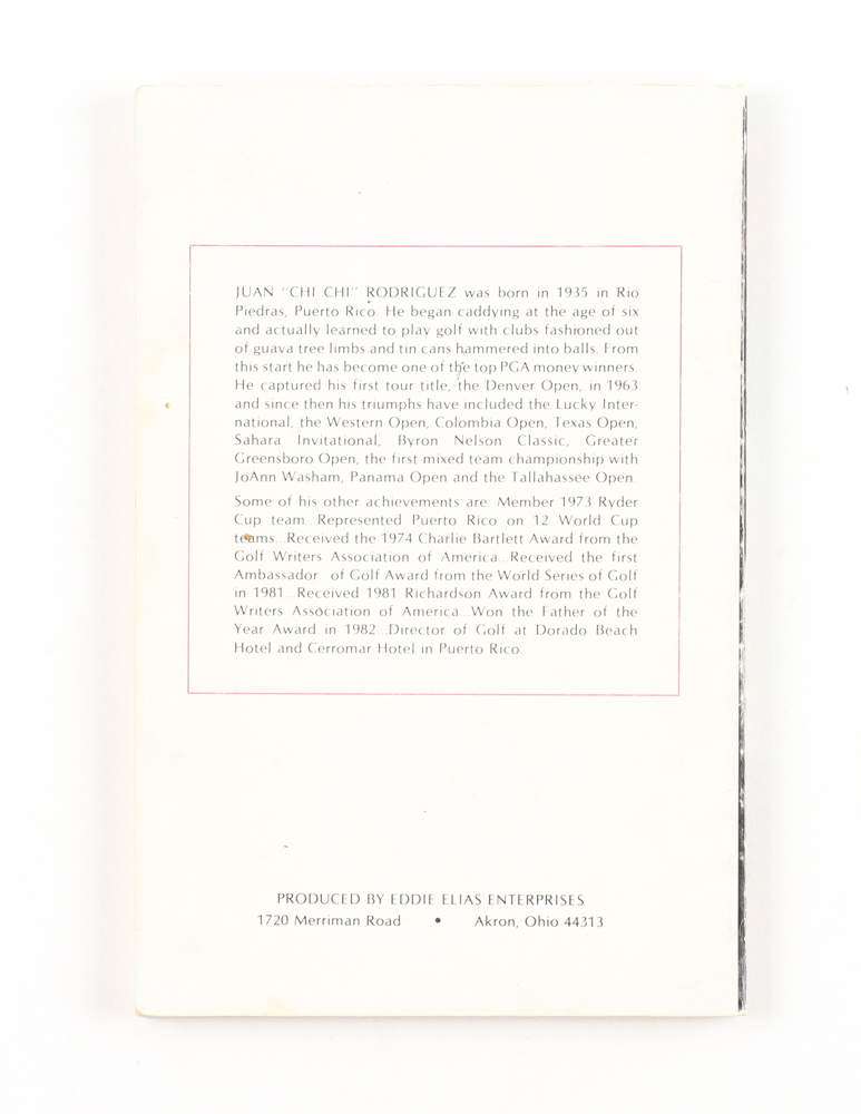 Softcover book has been hand-signed on the inside title page and cover by Chi-Chi Rodriguez (HOF).