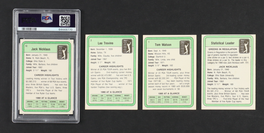 1981 Donruss Golf Complete Set of (66) Cards with Jack Nicklaus #13 RC (PSA 7), Jack Nicklaus #NNO SL, Tom Watson #1 RC, Lee Trevino #2 RC