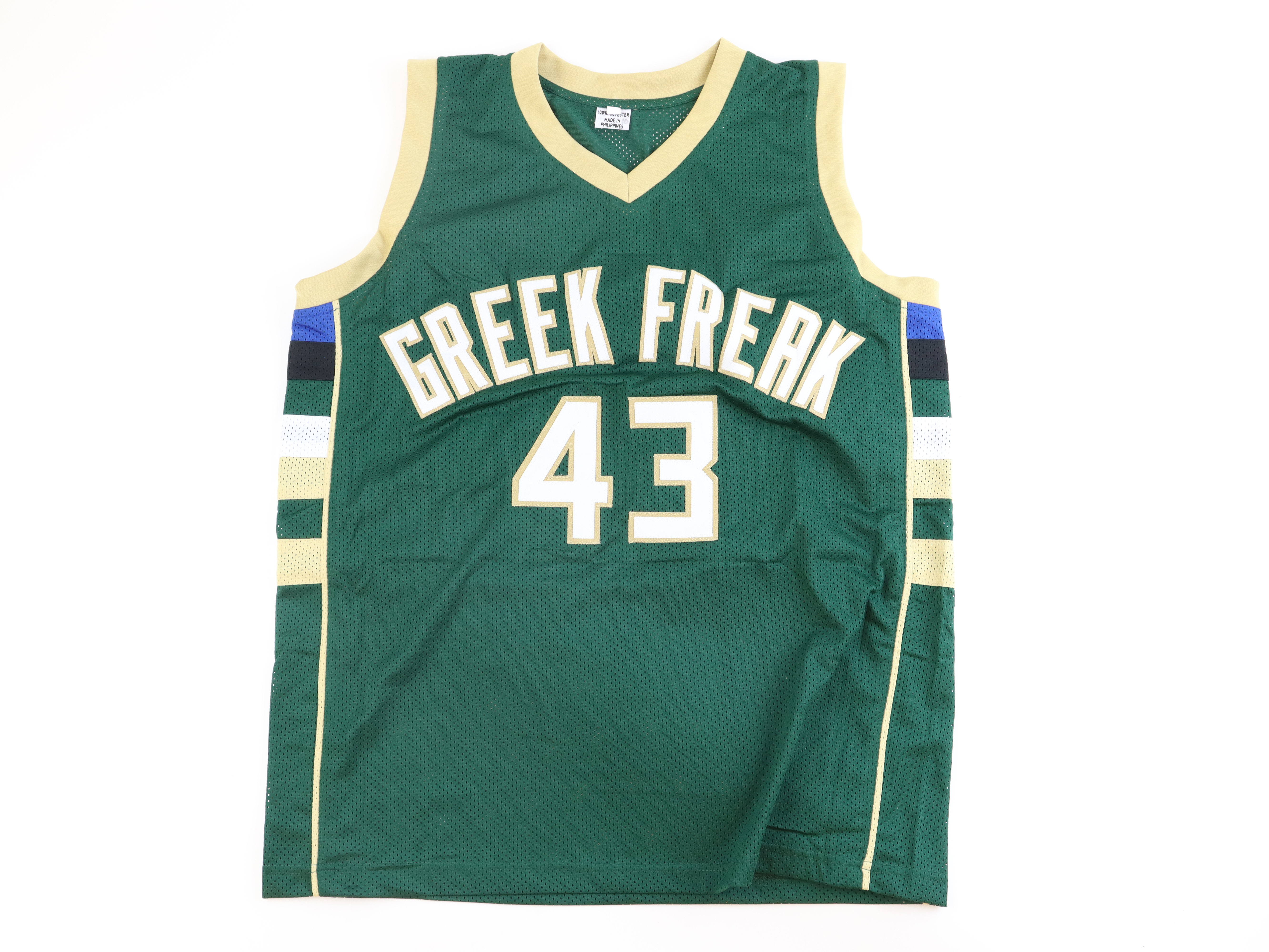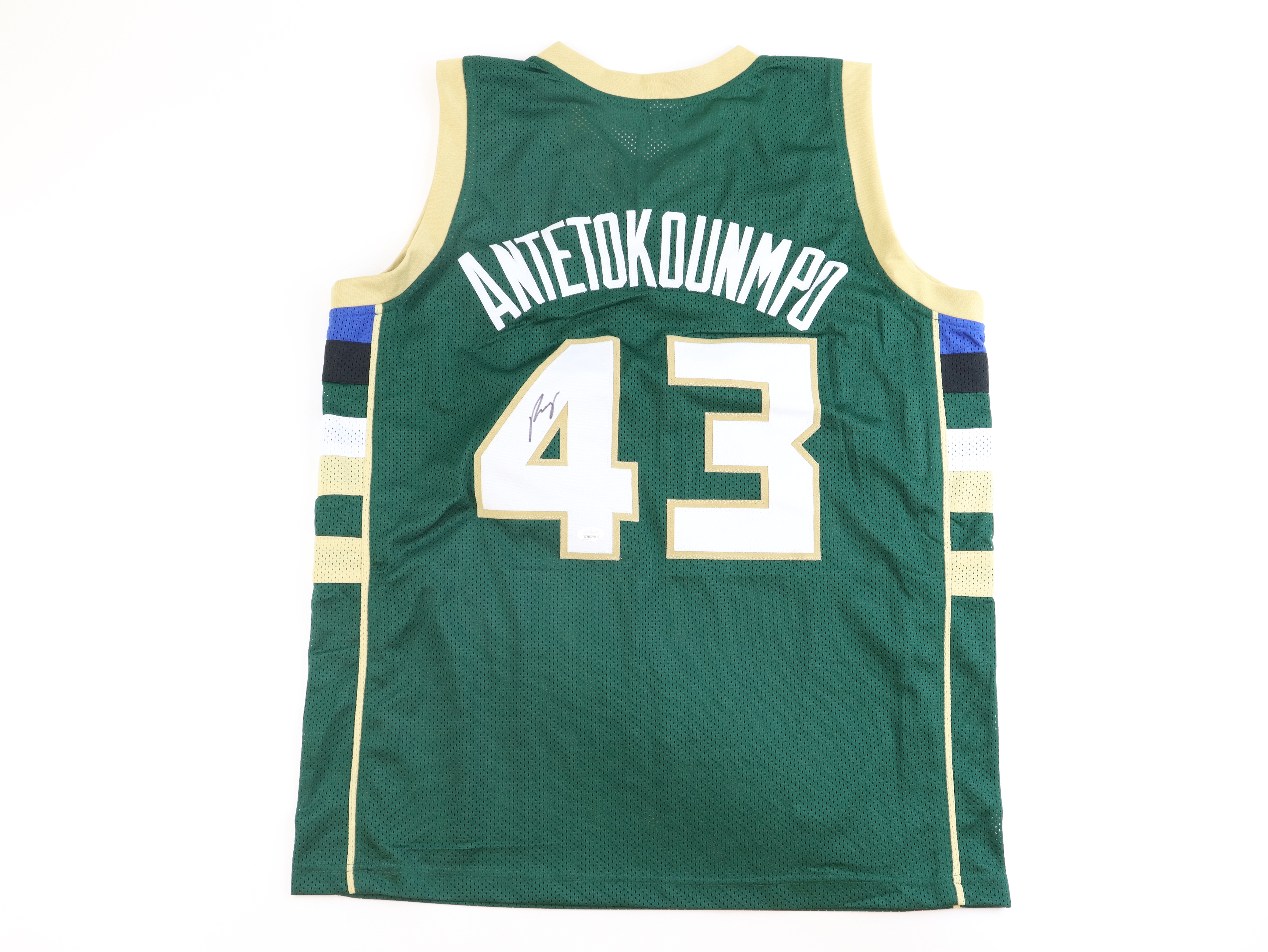 Custom jersey. Everything is sewn on, size XL. Hand-signed by Thanasis Antetokounmpo.
