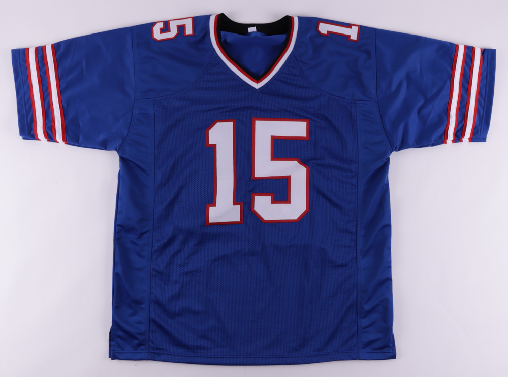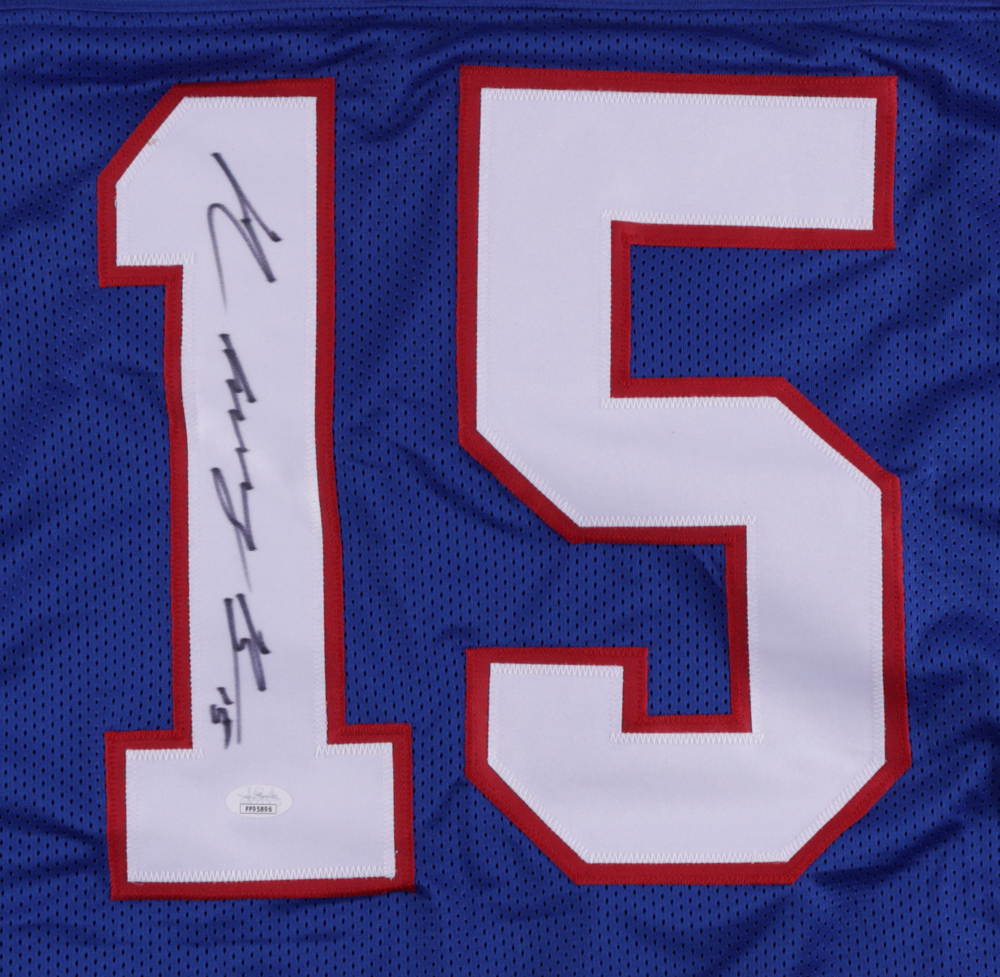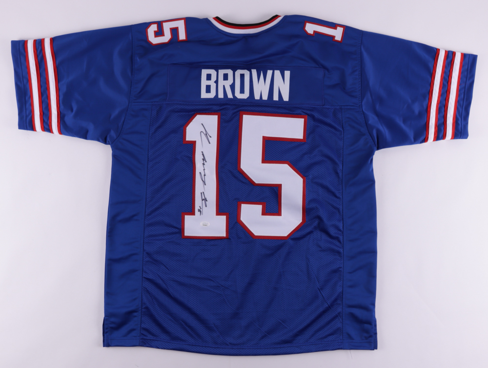 Custom jersey. Everything is sewn on, size XL. Hand-signed by John Brown.