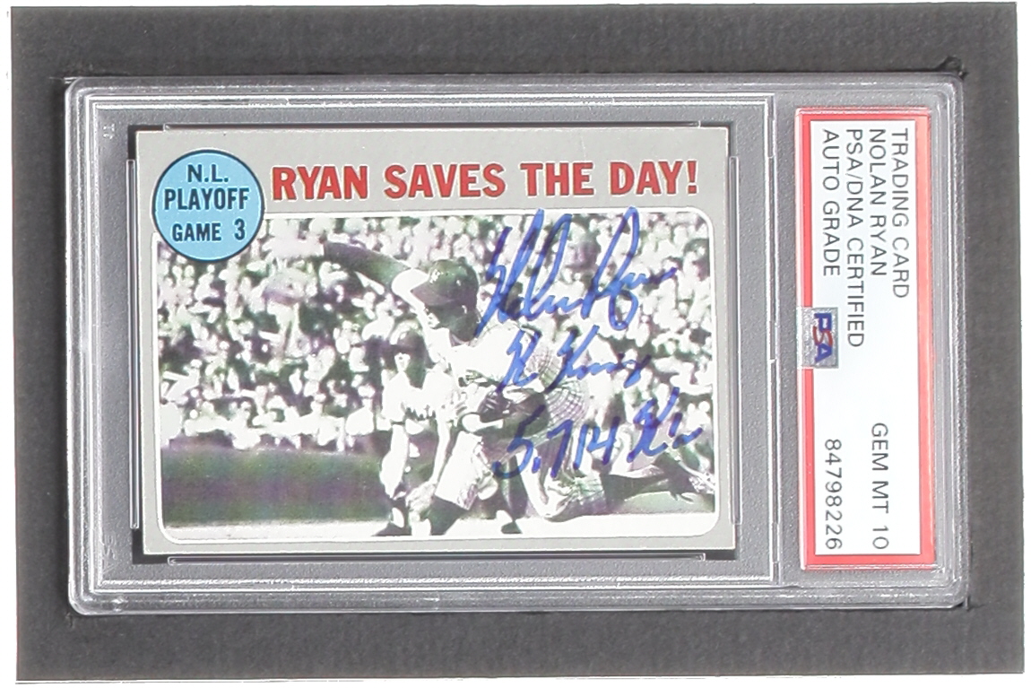 Nolan Ryan Signed 1970 Topps #197 NL Playoff Game 3 Inscribed "K King, 5,714 K's" (PSA | Auto 10)