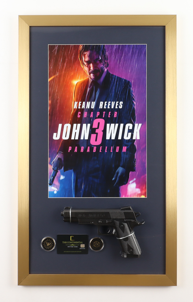 "John Wick Chapter 3 Parabellum" Custom Framed Movie Poster Display with Pistol, Adjudicator Coin & Continental Key Card