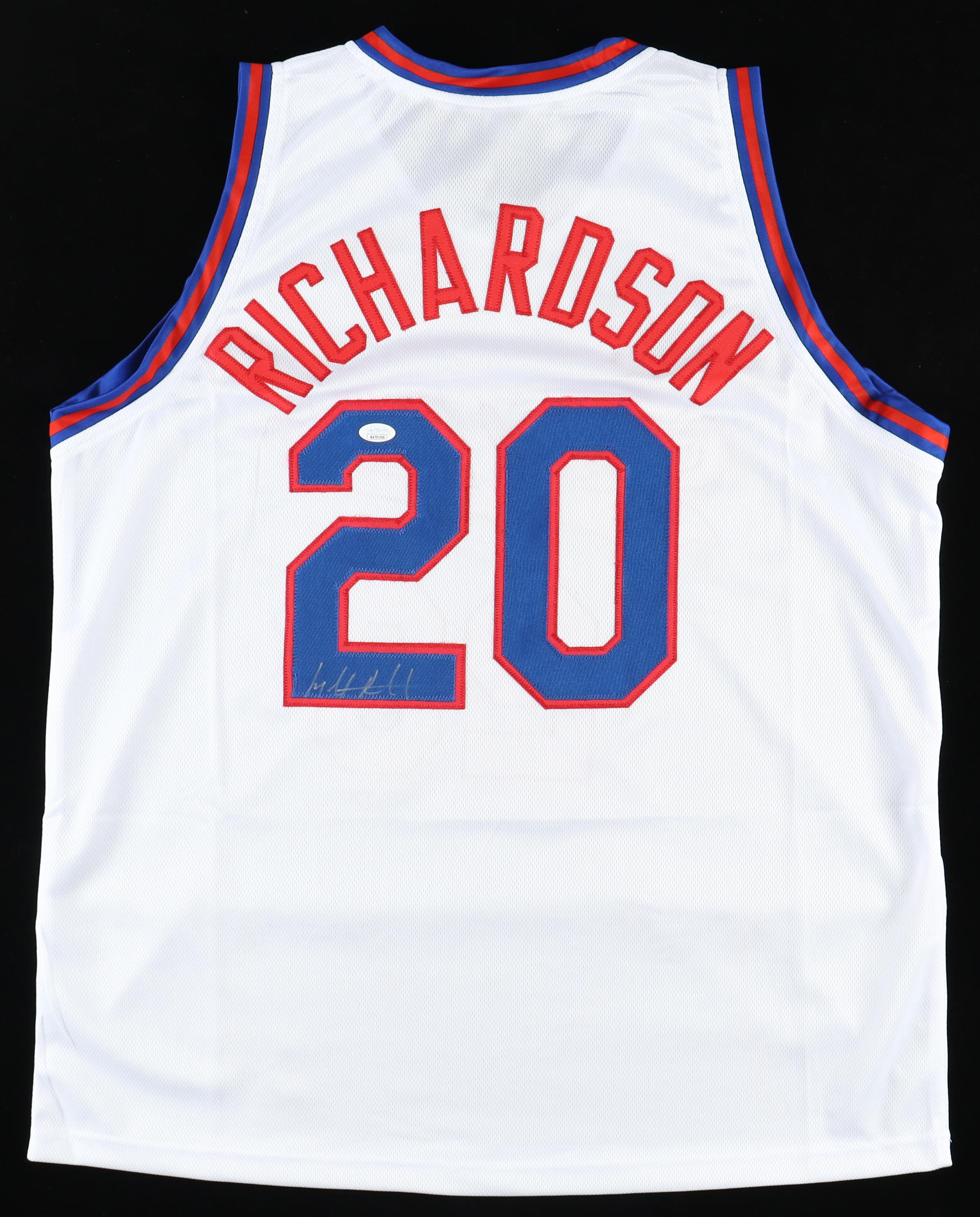 Custom jersey. Everything is sewn on, size XL. Hand-signed by Micheal Ray Richardson.