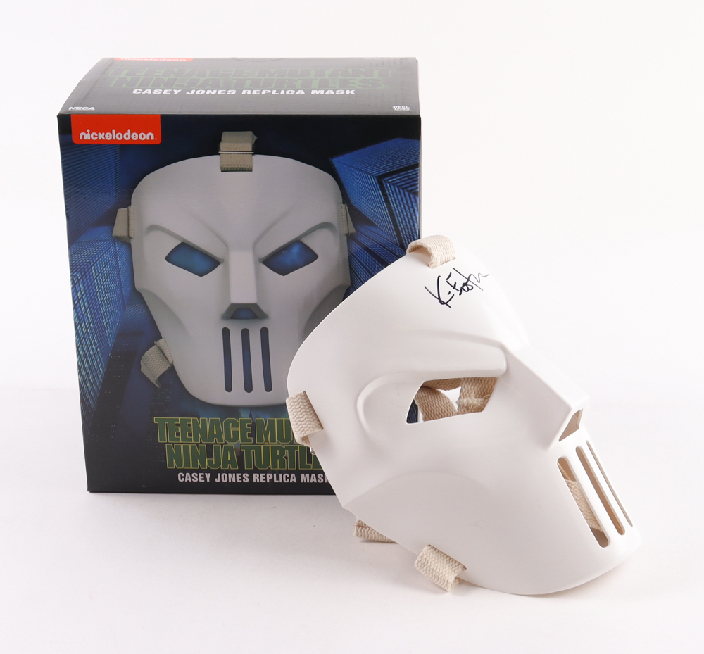 Officially licensed Teenage Mutant Ninja Turtles Casey Jones mask by NECA (1990 Movie). The mask is hand-signed by Kevin Eastman.
