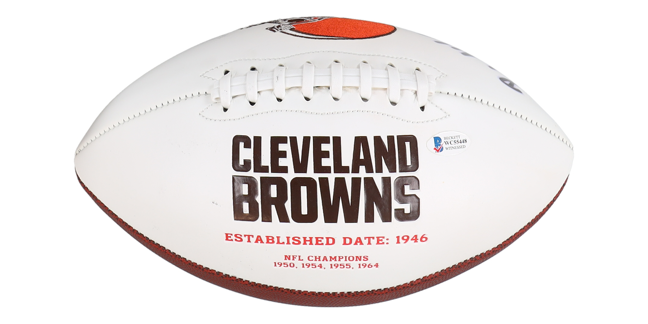 Cleveland Browns logo football. Hand-signed by Baker Mayfield.