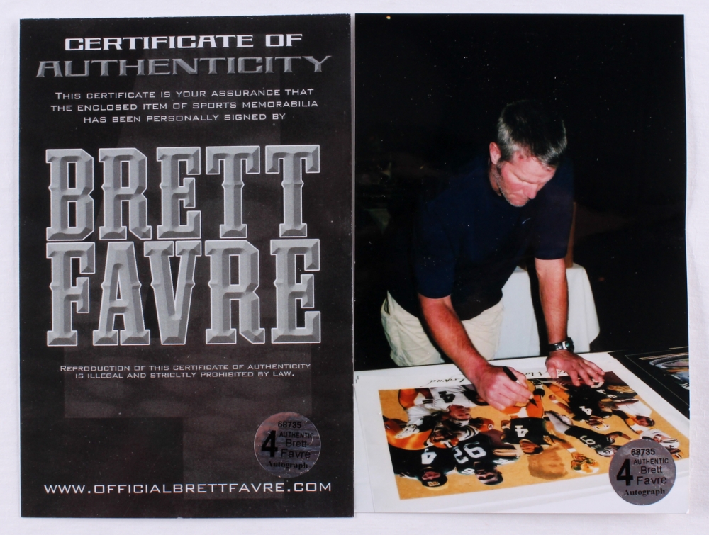 The autograph includes an official Brett Favre hologram and matching COA for authenticity purposes. Also includes a proof picture from the signing.