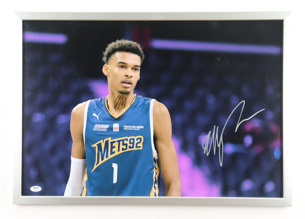 Victor Wembanyama Twice-Signed Custom Framed Photo Display (PSA)