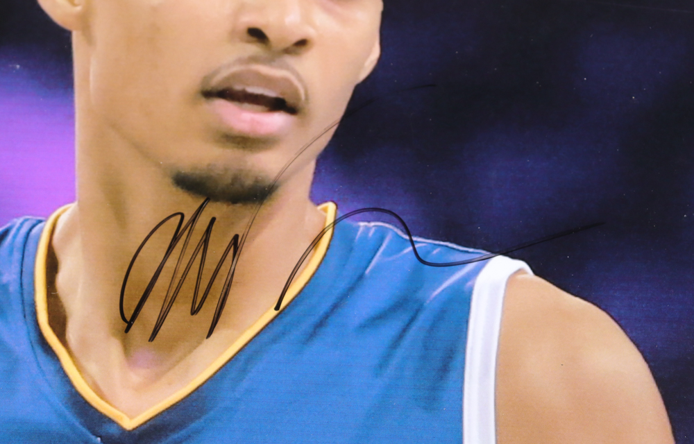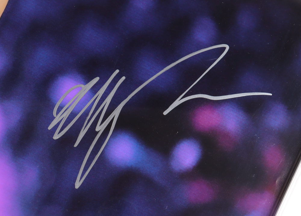 Custom frame measures 17" x 25" in size and features a photo that has been hand-signed twice by Victor Wembanyama (San Antonio Spurs). Please note, there is wrinkling in the top right section of the photo.