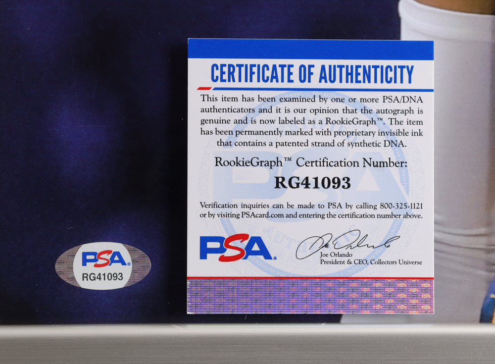 The autograph(s) includes a PSA/DNA "Rookie Graph" hologram and COA. "Rookie Graph" is the autographed memorabilia equivalent to a rookie card. The PSA/DNA definition of a "Rookie Graph" is as follows: "Any item that is autographed and received by PSA/DNA prior to the beginning of the athlete's second full season."