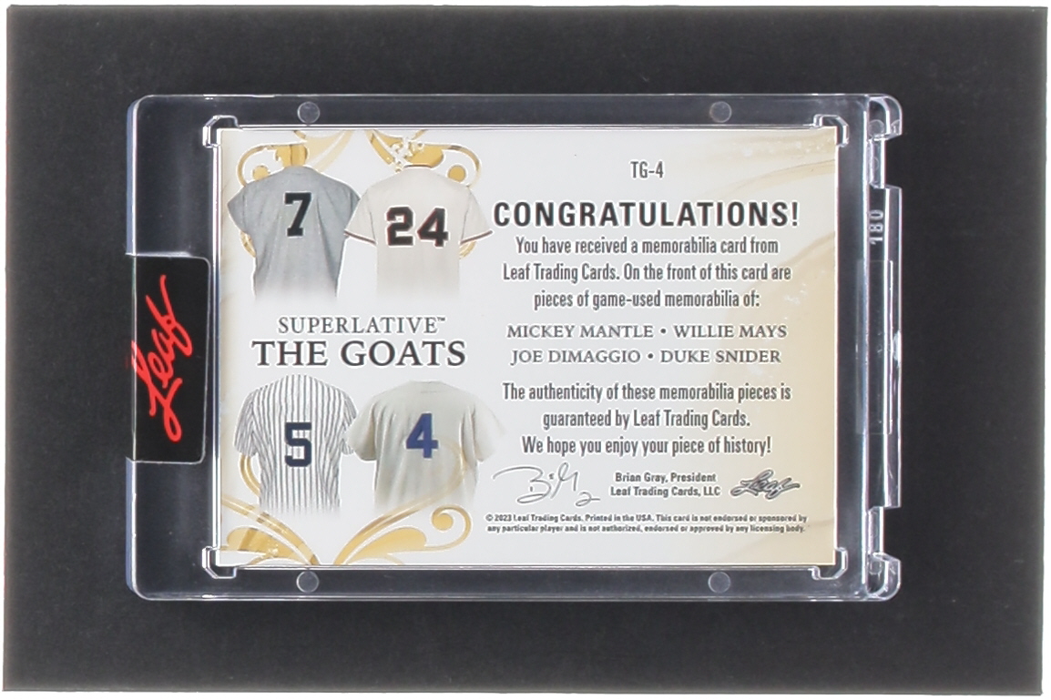 Mickey Mantle / Willie Mays / Joe DiMaggio / Duke Snider 2023 Leaf Superlative The Goats Red Spectrum #TG4 #3/5