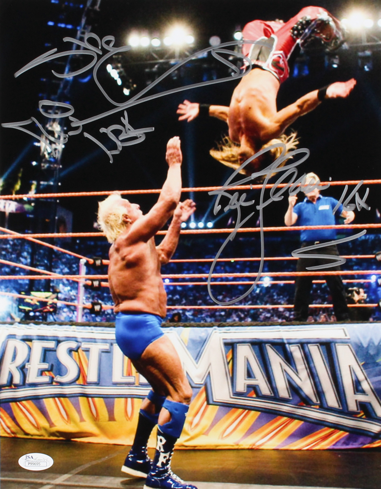 Rick Flair & Shawn Michaels Signed 11x14 Photo Inscribed "16x" & "HBK"(JSA COA)