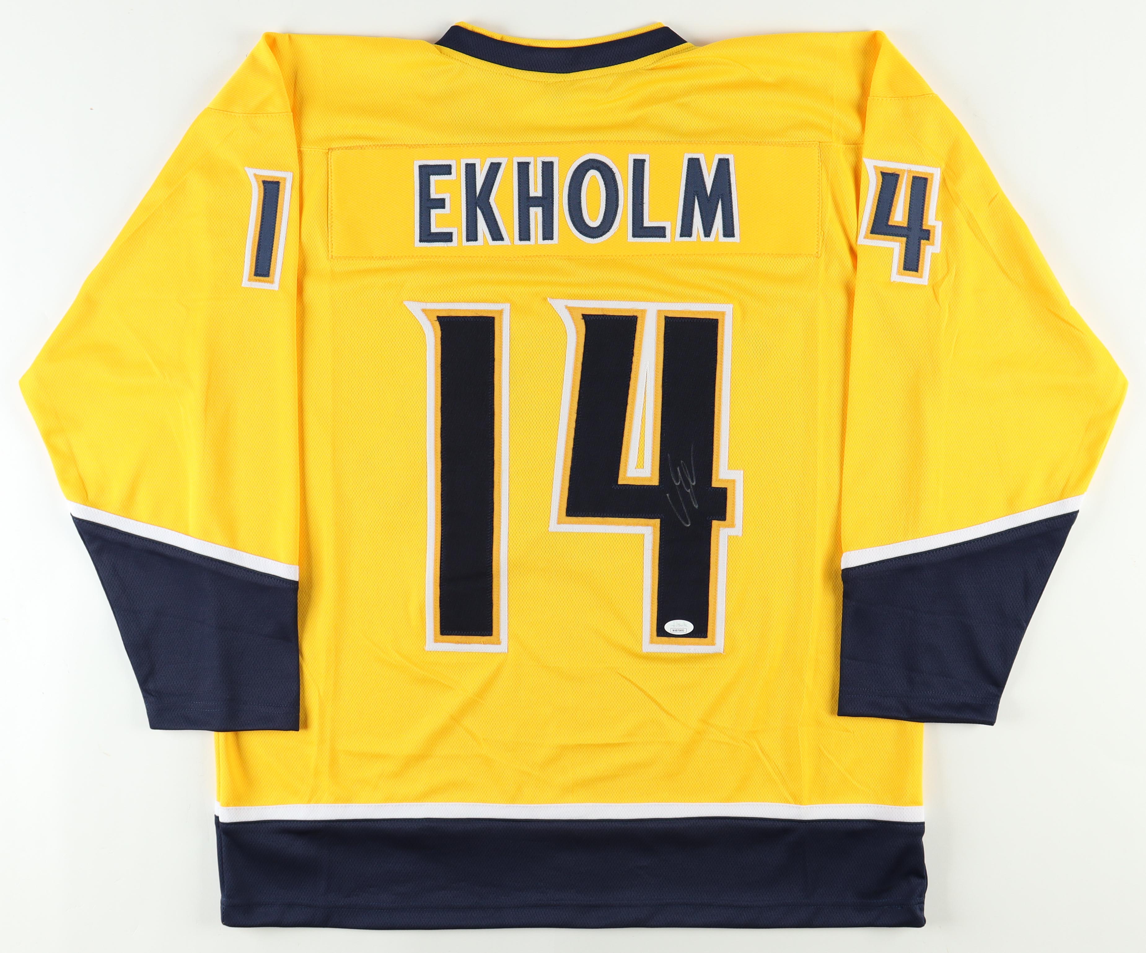 Custom jersey with everything sewn on, size XL. Hand-signed twice by Mattias Ekholm.